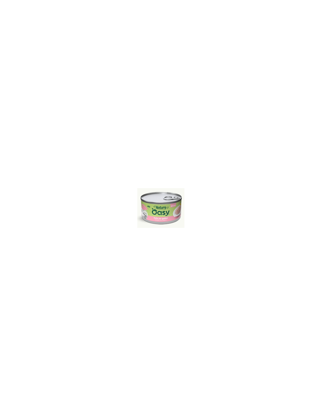 pollo 48%, fegato di pollo 5%, uova intere disidratate 5%, olio di semi di girasole 2%, riso 1%, estratto di lievito 0,1%.