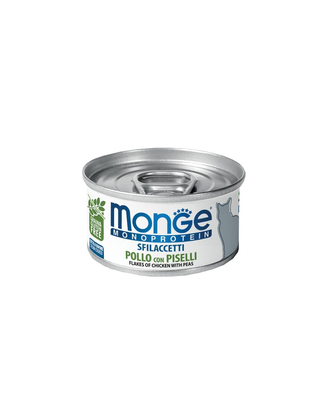 Pollo 65% (pari al 100% della carne utilizzata), piselli 4,2%, oli e grassi vegetali (olio di girasole raffinato), sostanze minerali.