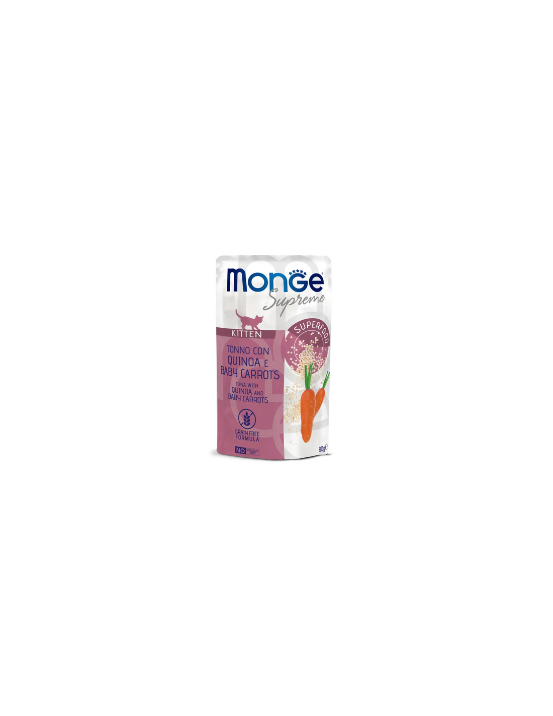 Tonnetto Striato (Katsuwonus pelamis) 55%, quinoa 4%, baby carote 4%, olio vegetale di girasole purificato, tapioca, fruttoligosaccaridi (F.O.S.) 0,04%. Additivi Nutrizionali: Vitamina E (DLalfa- tocoferile acetato) 50 mg/kg. Proteina grezza 16%, Fibra grezza 0,1%, Grassi grezzi 2%, Ceneri grezze 2%, Umidità 78,0%. Energia metabolizzabile (NRC 2006): 953 kcal/kg.