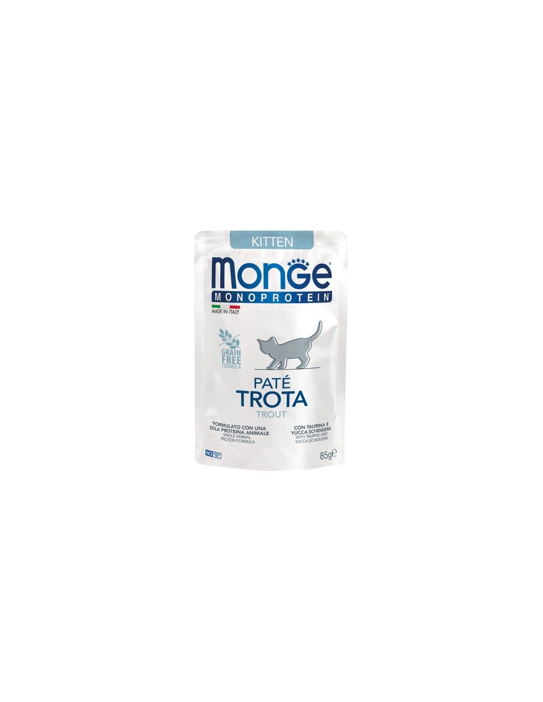 Trota ( fresca 40% e disidratata 10%), brodo di trota, patate (4%), prodotti del lievito (2%), sali minerali, yucca schidigera (0,025%).