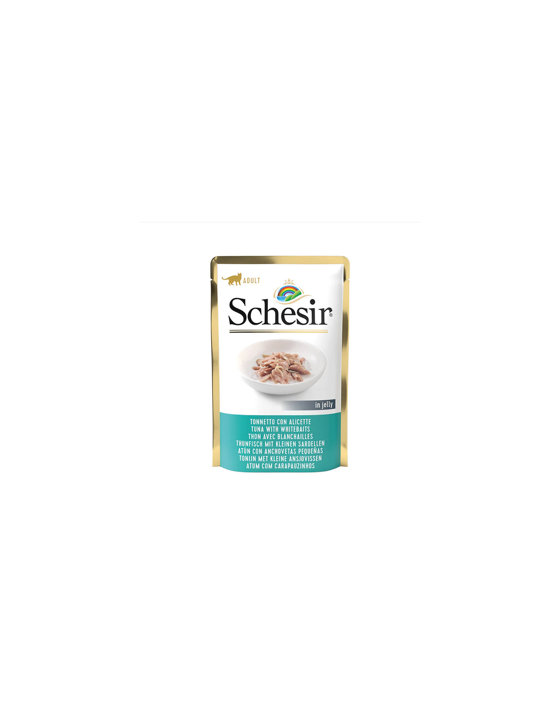 Ingredientitonnetto 55%, alici 5%, riso 1,5%Componenti Analiticiproteina 16,7%, grassi grezzi 0,6%, fibre grezze 0,1%, ceneri grezze 1,7%, umidità 79%