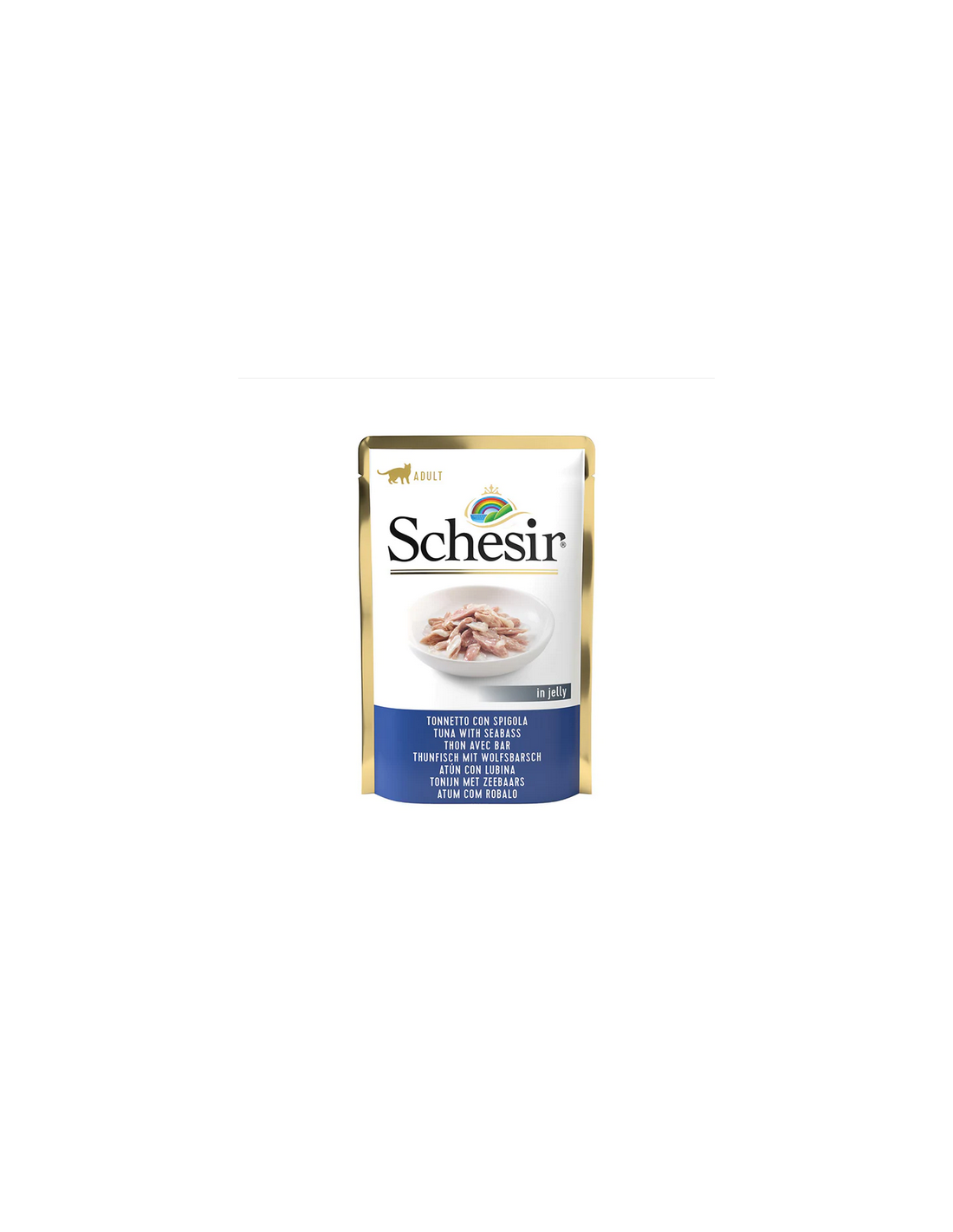Ingredientitonnetto 57%, spigola 5%, riso 1,5%Componenti Analiticiproteina 13%, grassi grezzi 1%, fibre grezze 1%, ceneri grezze 2%, umidità 83%