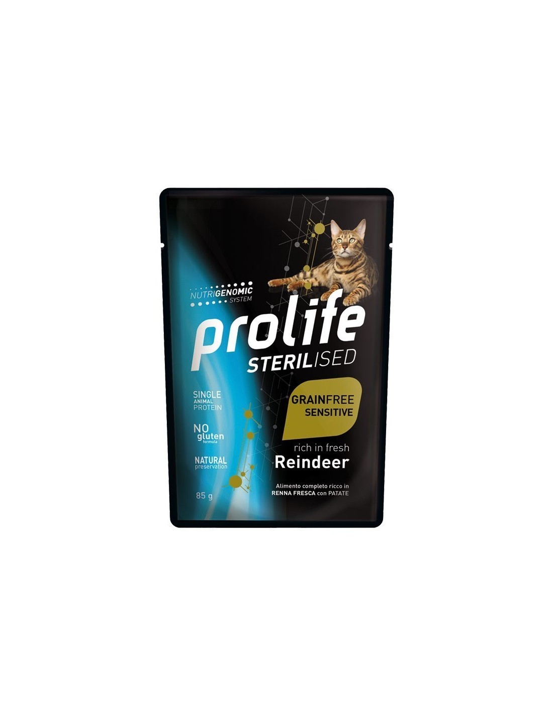 Alimento completo ricco in Carne Fresca di Renna con Patate per il gatto adulto ipersensibile.