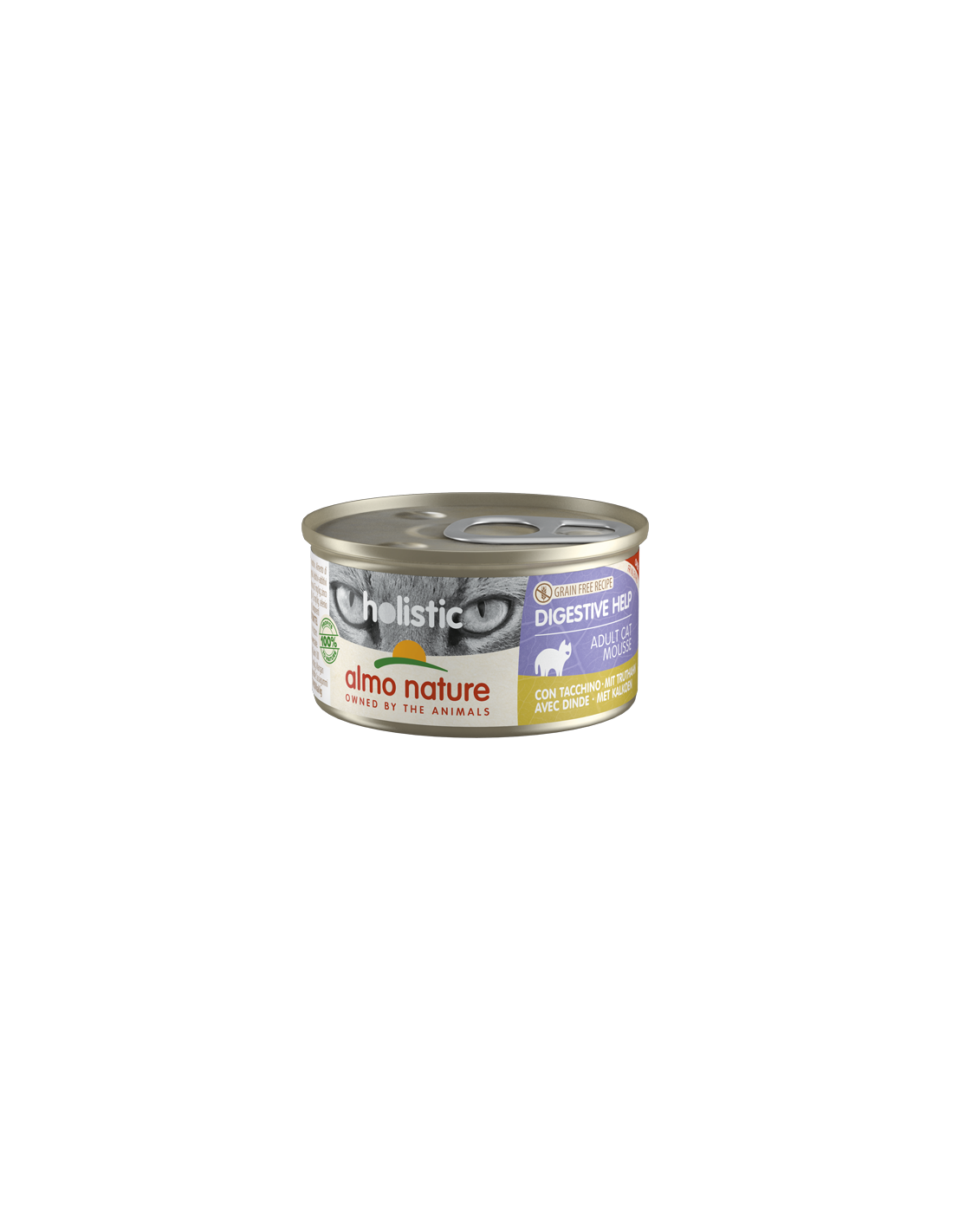 Carni e derivati 60% (tacchino 4%, fegato 4%), sostanze minerali, estratto di fibre vegetali.
