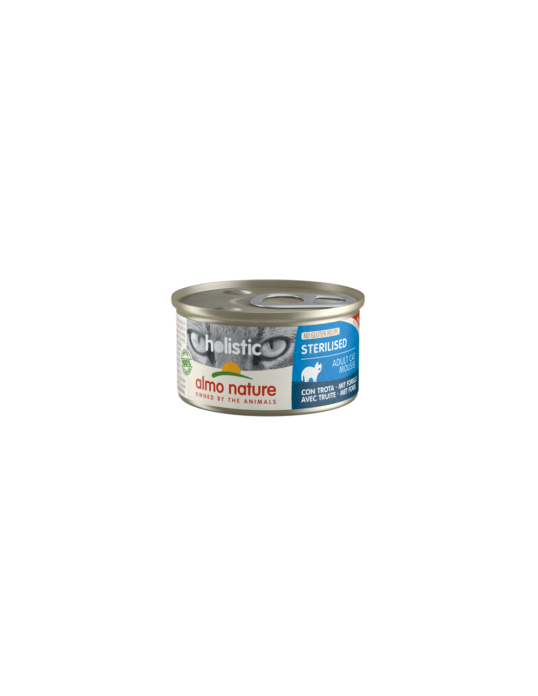 Carni e derivati 46%, trota 4%, cellulosa 2%, farina di riso 1%, sostanze minerali, estratto di fibre vegetali, solfato di condroitina 0,01%, glucosamina 0,01%.