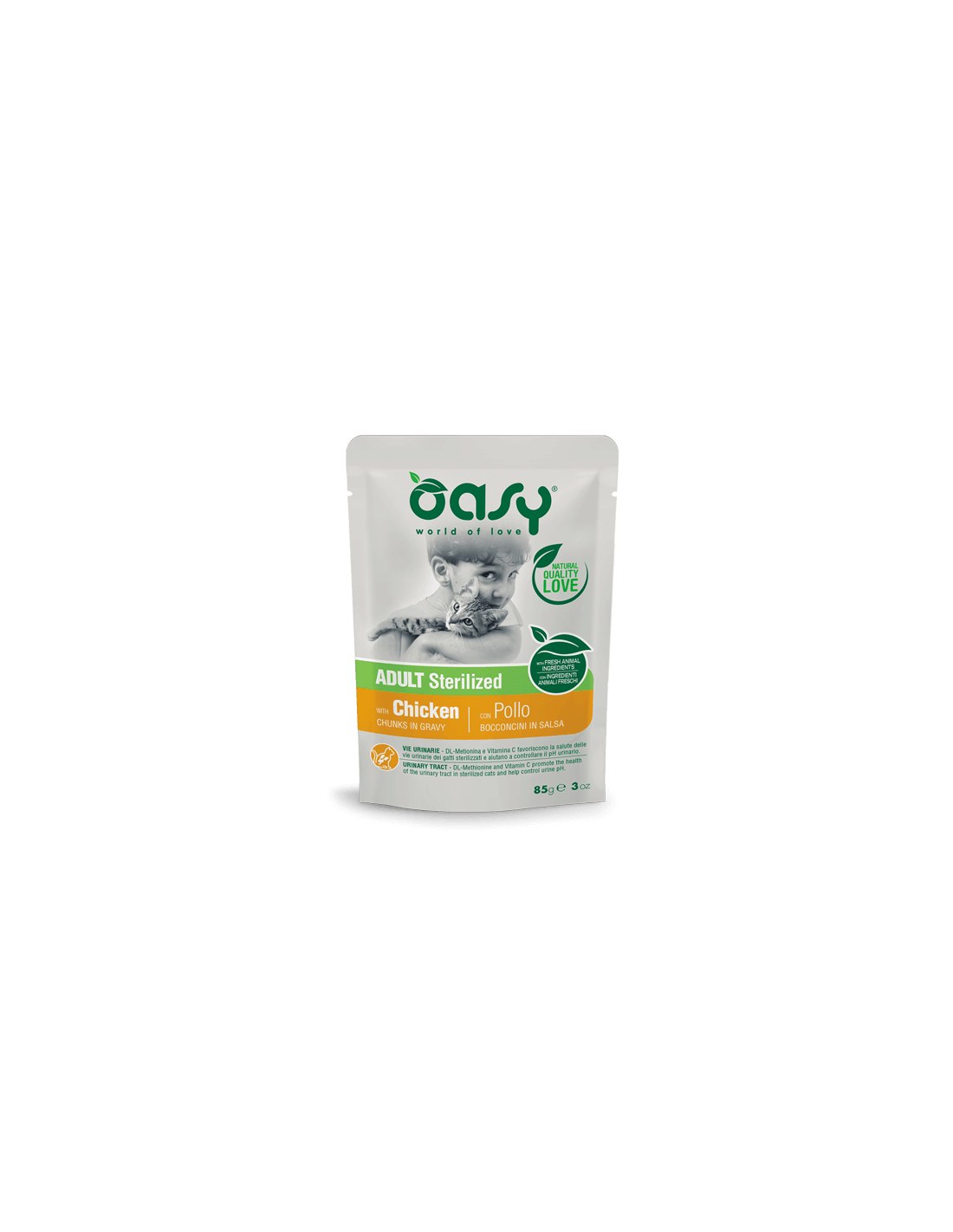 ADDITIVI NUTRIZIONALI: Vitamina E: 31 mg/kg, taurina: 226,43 mg/kg, Vitamina C: 98,8 mg/kg, Vitamina B1: 2,4 mg/kg, biotina: 0,01 mg/kg, rame (solfato di rame(II) pentaidrato): 0,6 mg/kg, iodio (ioduro di potassio): 0,15 mg/kg, manganese (solfato manganoso, monoidrato): 1,85 mg/kg, zinco (solfato di zinco monoidrato): 15,65 mg/kg, DL-metionina: 231 mg/kg. SENZA AROMATIZZANTI O COLORANTI ARTIFICIALI AGGIUNTI. PRODOTTO SENZA GLUTINE AGGIUNTO.