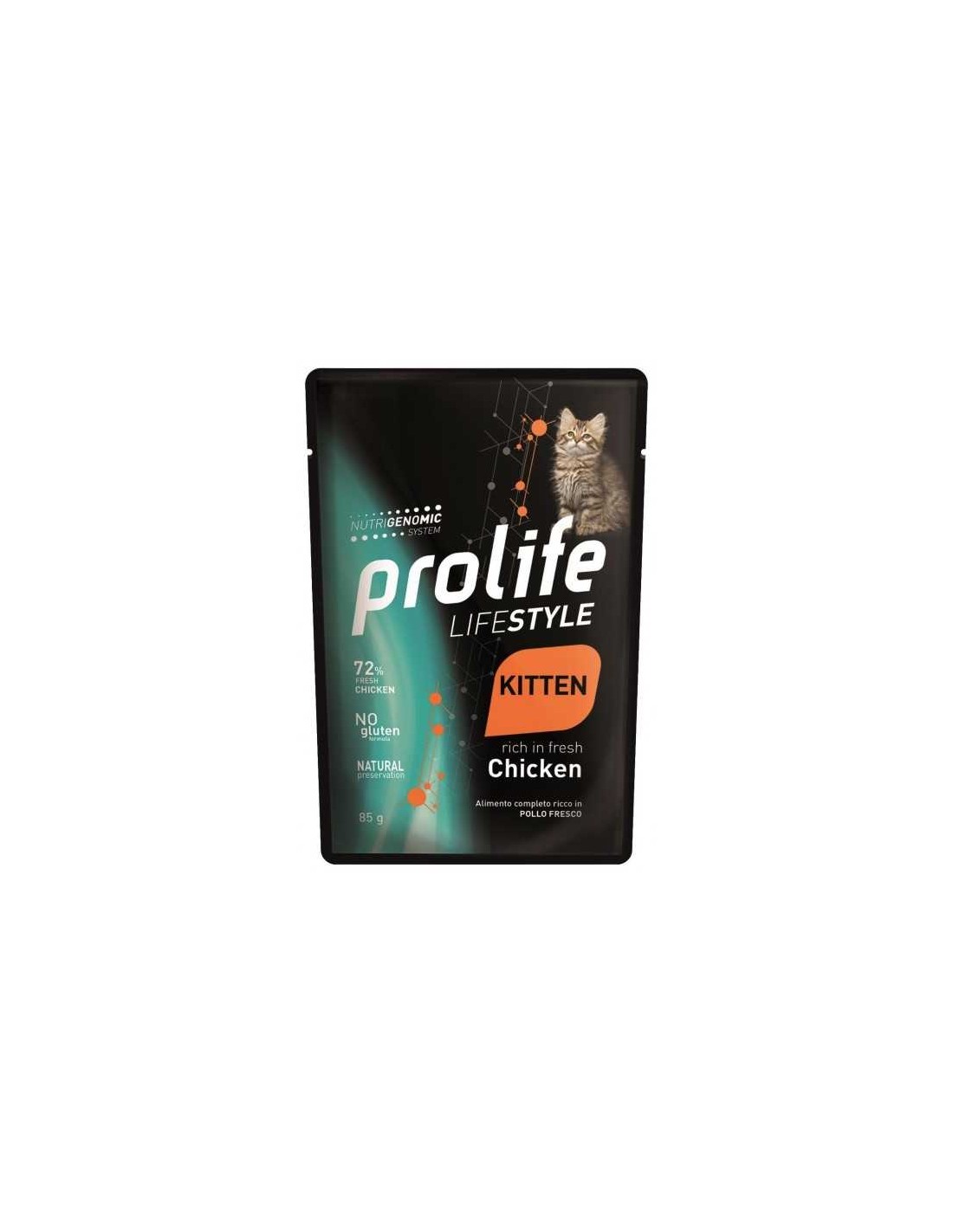 Alimento completo ricco in Carne Fresca di Pollo con Riso per gattini da 1 a 12 mesi.