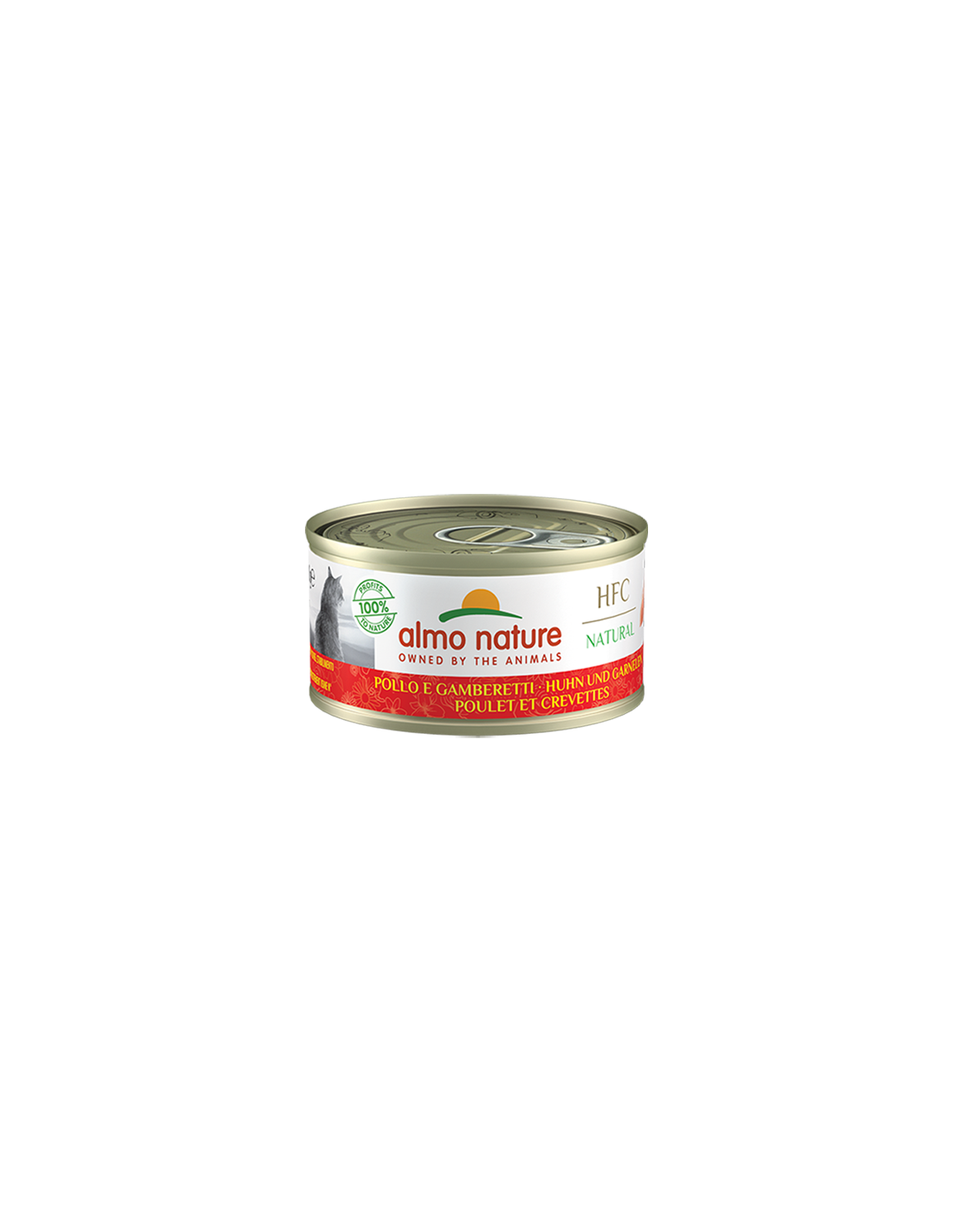 Pollo 55%, brodo di pollo 24%, gamberetti 20%, riso 1%.