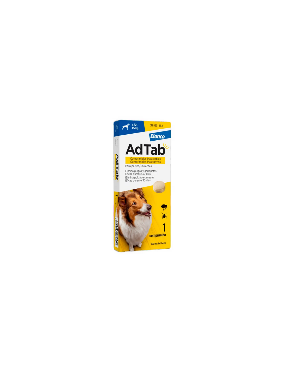 AdTab è una gustosa compressa per cani, masticabile e aromatizzata al gusto di carne, che elimina pulci e zecche per un mese intero.