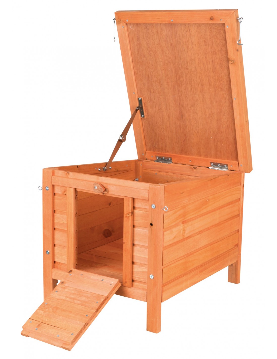 - con piedini per proteggere dall'umidità e dal freddo del suolo e per permettere un buon ricircolo d'aria sotto la casetta