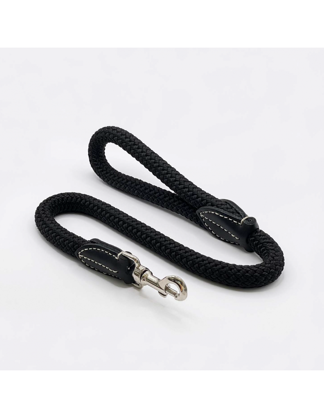 Guinzaglio in nylon di corda elegante e robusto, con inserti in pelle e accessori in acciaio.