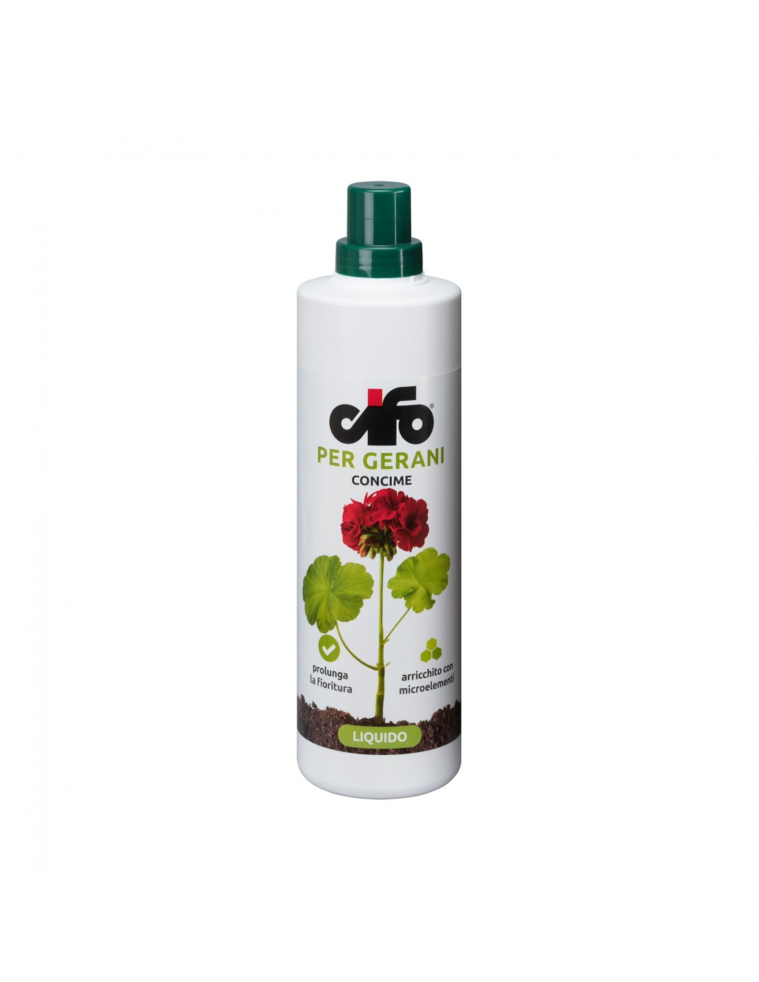 Concime liquido per Gerani Cifo contiene tutti gli elementi nutritivi indispensabili al regolare sviluppo dei gerani. Prontamente e totalmente assimilabile per via radicale e fogliare, consente di ottenere piante equilibrate, forti e rigogliosamente fiorite con petali dai colori brillanti.