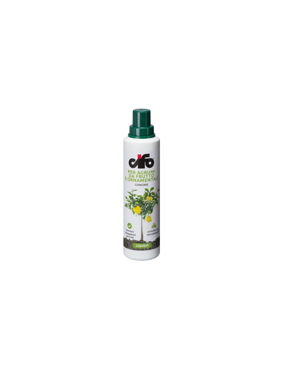 Concime liquido per agrumi, specifico per prevenire e curare le carenze nutrizionali di agrumi coltivati: Arancio, Limone, Mandarino, Cedro, Bergamotto, Kumquat, Pompelmo, Chinotto. Nutre in modo completo anche fruttiferi, ortaggi e piante ornamentali e da fiore. Consente di ottenere piante ben equilibrate e con una buona fruttificazione.