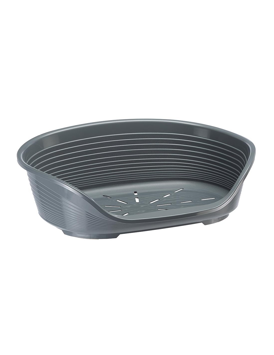Ecco un' accogliente cuccia da interno per cani e gatti realizzata in solida resina termoplastica! Osservate il design e la forma arrotondata: bordi alti e confortevoli, lato frontale ribassato con comodo poggiamento per l'animale, utili piedini di appoggio con antiscivolo. Il fondo opportunamente perforato è stato studiato per consentire il corretto passaggio dell'aria.