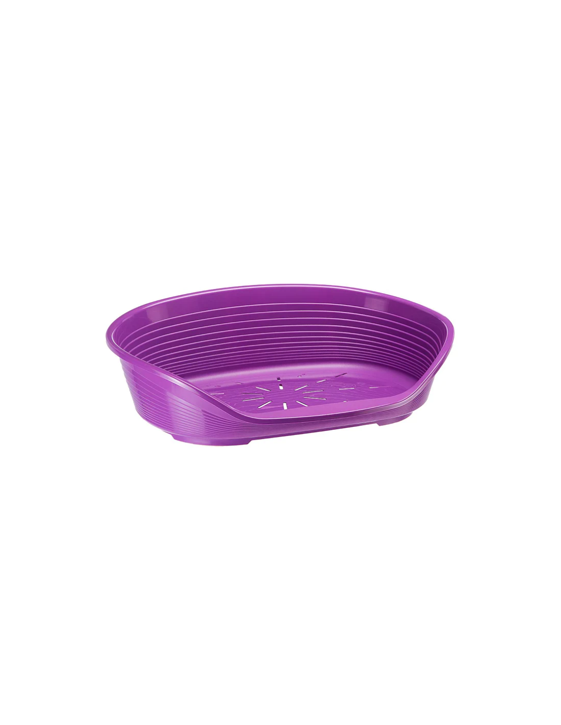Ecco un' accogliente cuccia da interno per cani e gatti realizzata in solida resina termoplastica! Osservate il design e la forma arrotondata: bordi alti e confortevoli, lato frontale ribassato con comodo poggiamento per l'animale, utili piedini di appoggio con antiscivolo. Il fondo opportunamente perforato è stato studiato per consentire il corretto passaggio dell'aria.