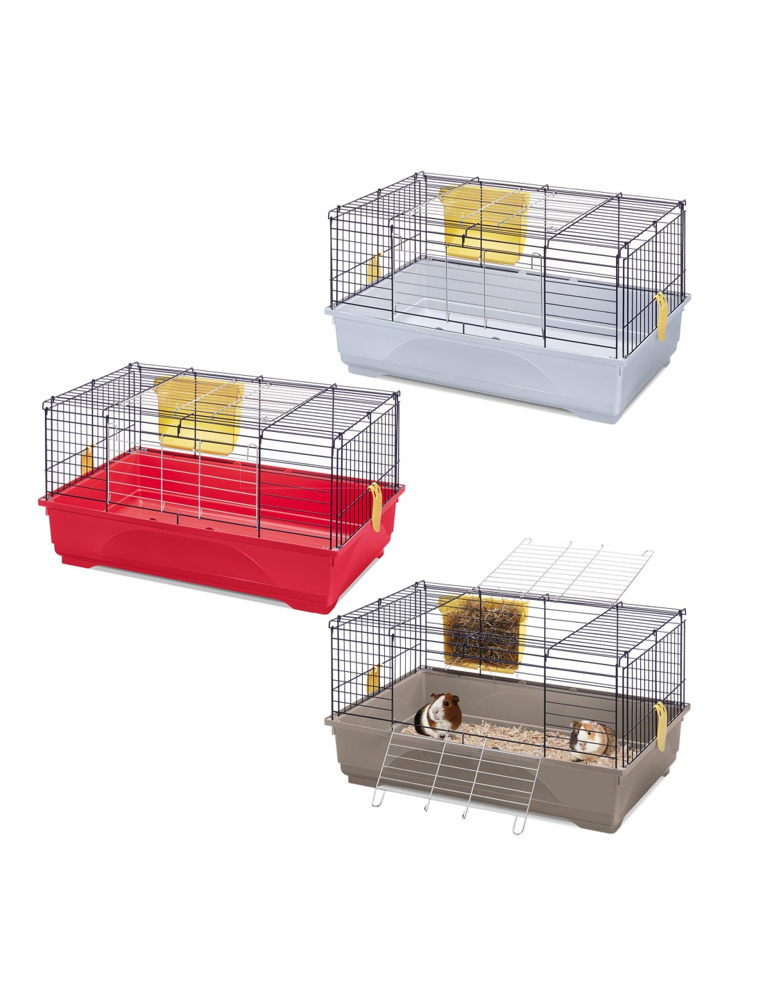 Easy 80 è una gabbia di media grandezza, adatta a ospitare conigli e cavie, dal fondo in plastica capiente e robusto. Comode clip laterali ti permettono di agganciare e sganciare la struttura in rete metallica verniciata, per pulire comodamente la gabbia. Le ampie portine con chiusura di sicurezza, sulla parte laterale e superiore, ti permettono di inserire il cibo e di effettuare le normali operazioni di manutenzione. Completa questa spaziosa gabbia la mangiatoia per il fieno, agganciata esternamente alla rete metallica. Disponibile in tre colori: rosso, verde e azzurro. Disponibile come optional il Portagabbie 80 per spostare comodamente la gabbia, grazie alle ruote piroettanti.