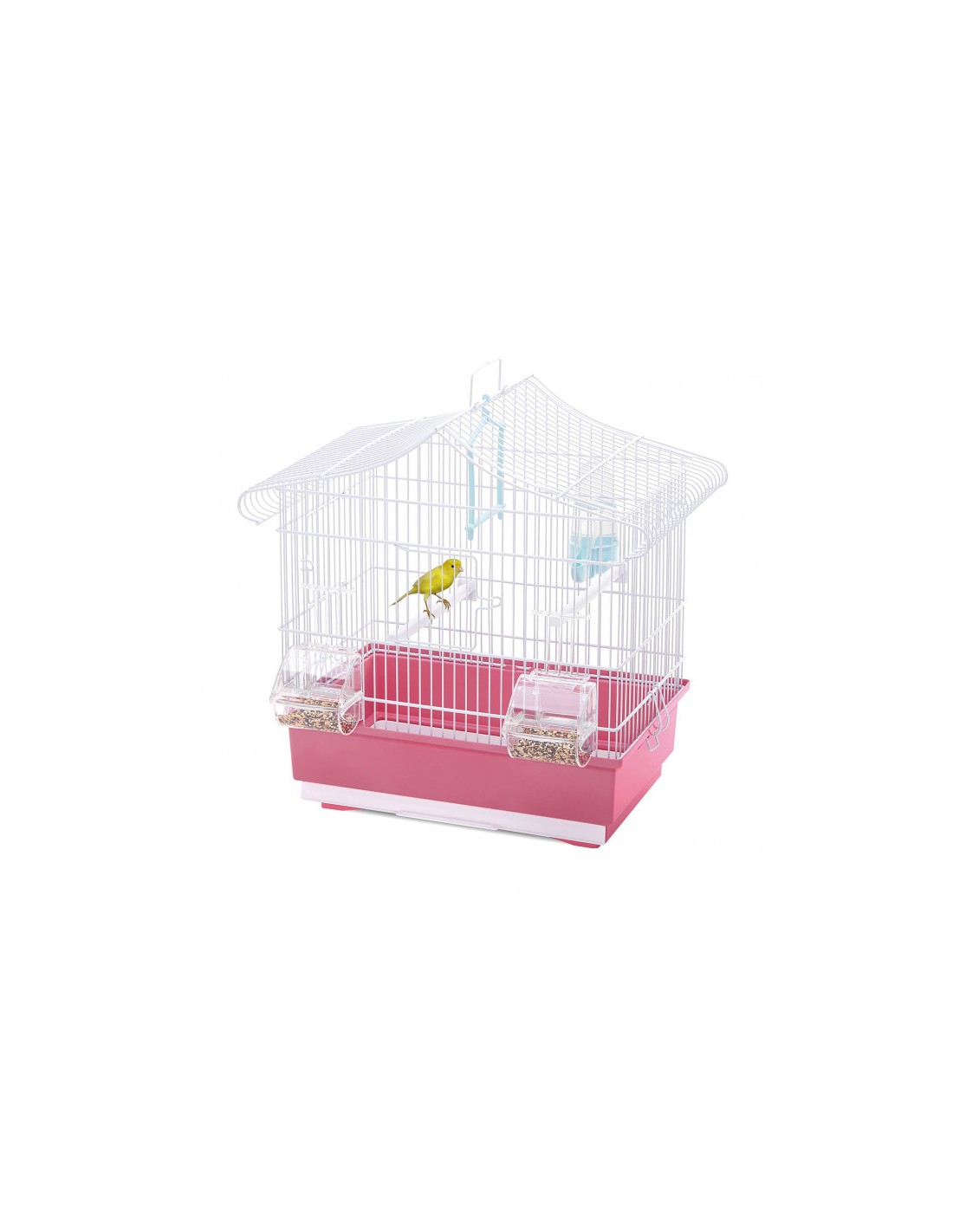 La gabbia AVA ha dimensioni ridotte, una forma rettangolare e il tetto spiovente arrotondato. L’abbinamento cromatico della struttura in rete metallica verniciata bianca al fondo in plastica rosso fragola, rendono questa gabbia piacevole alla vista. Per una pulizia approfondita basta sganciare il fondo grazie alle pratiche clips laterali. Invece per una pulizia quotidiana e veloce basta estrarre il cassettino frontale. Le due porticine, una frontale e una laterale, consentono di accedere comodamente alla gabbia per le normali operazioni di manutenzione. Completano la gabbia Ava gli accessori necessari per accogliere o ospitare nel miglior comfort i tuoi piccoli amici: due posatoi, un’altalena, un beverino Tweety 100 e due mangiatoie Mia, ideali per versare cibo senza estrarle dalla gabbia. Dotata di maniglia per facile trasporto o per agganciarla al Portagabbie 214 o 216 (optional), in modo da posizionarla nel luogo più adatto della tua casa.