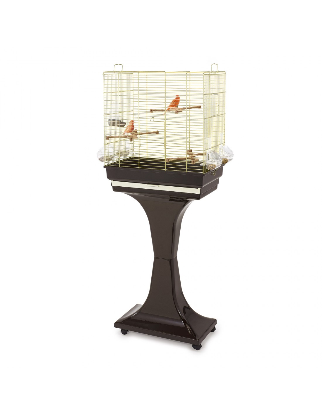 La gabbia Camilla è adatta per uccelli di piccole dimensioni, le sbarre sono ottonate e il fondo è in plastica di colore marrone, di forma rettangolare, essenziale ma spaziosa e comprensiva di piedistallo in plastica marrone con ruote piroettanti. La gabbia si pulisce in un attimo grazie al fondo in plastica con cassetto raccogli sporco estraibile. Camilla è acquistabile completa dei seguenti accessori: quattro mangiatoie Mia in plastica trasparente, un beverino Tweety 100 e tre posatoi a forma di ramo che permettono di variare continuamente la presa delle zampette, rendendo l’utilizzo simile a quello che si trova in natura.