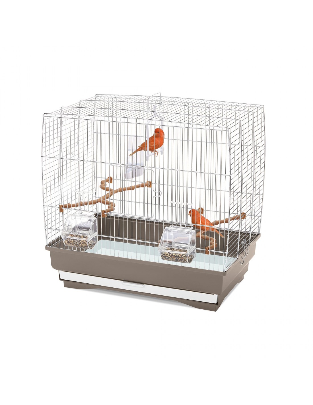Irene 3 è una gabbia essenziale di medie dimensioni dalla base rettangolare con robusto fondo in plastica colore marrone abbinato a struttura in rete zincata, E’ perfetta per accogliere canarini e piccoli esotici, grazie anche agli accessori indispensabile per offrire il massimo comfort. Inclusi troverete due mangiatoie Mia, un beverino Tweety 100, due posatoi a forma di ramo e un’altalena gioco. La manutenzione e la pulizia risulteranno facilitate dal cassetto estraibile sul fondo e dalle due aperture una frontale e l’altra laterale. Come optional potrete acquistare il supporto in plastica Portagabbie 226 marrone, dotato di ruote piroettanti per posizionare la gabbia, senza fatica, dove vuoi.
