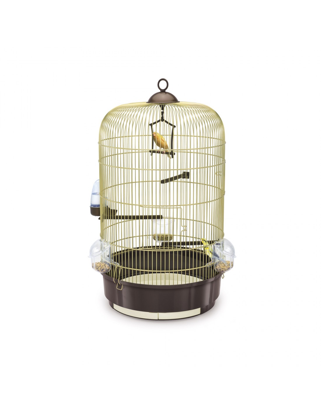 Luna è una gabbia rotonda per piccoli uccelli, dalle dimensioni medie, in rete ottonata con il fondo marrone. È dotata di due aperture con comodo gancio di chiusura per accedere alla gabbia in sicurezza. Questa piacevole gabbia viene fornita completa di accessori quali: un’altalena, due posatoi, un beverino Tweety 100 e due mangiatoie Star in plastica trasparente, facilmente riempibili di cibo dall’esterno. La manutenzione e pulizia della gabbia risulterà facilitata dai due comodi cassetti estraibili. Potrai posizionare la gabbia Luna nell’ambiente più adatto grazie al comodo Portagabbie 219 (optional).
