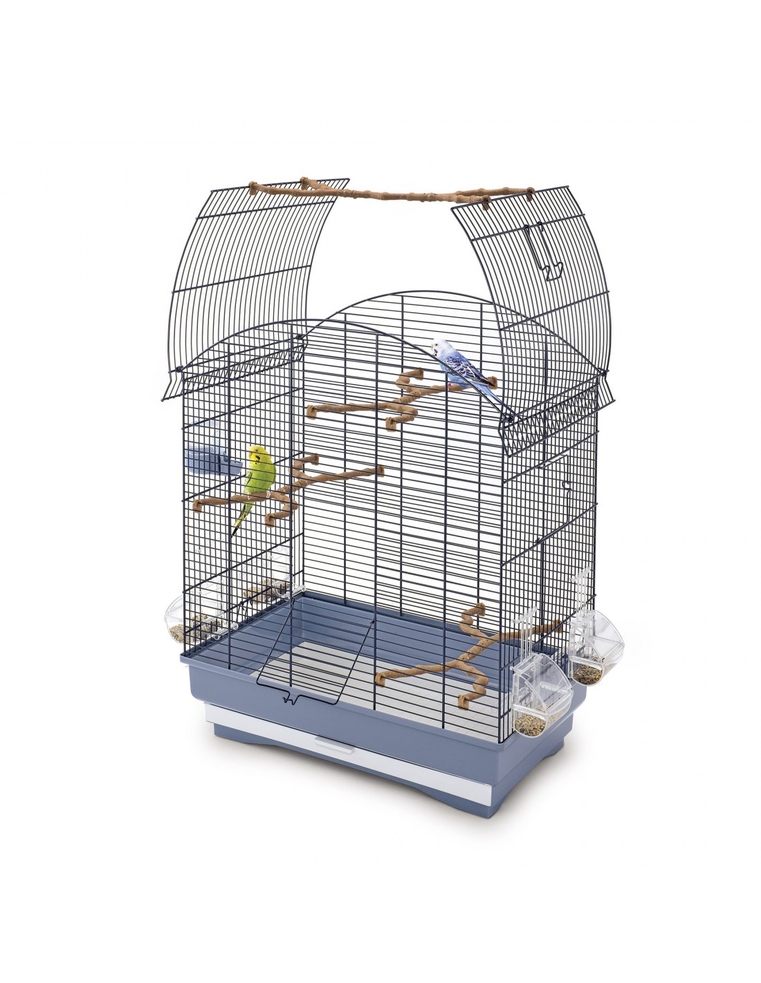 La gabbia Agata offre ampio spazio a canarini, cocorite e piccoli esotici. Di forma rettangolare con tetto arrotondato apribile e struttura in rete verniciata blu abbinata ad un fondo in plastica blu avio. Curata nei dettagli,è dotata di maniglia per un facile trasporto e di un’ampia portina frontale ad apertura verticale e una più piccola laterale, per accedere comodamente per ogni eventuale necessità. Posizionando il posatoio a forma di ramo sul tetto apribile, il vostro amico piumato potrà entrare e uscire a suo piacimento. Per una praticissima pulizia della gabbia estraete il cassetto posto sul fondo e potrete rimuovere lo sporco quotidiano con estrema facilità. Gli accessori che completano questa gabbia rispondono a tutte le necessità del vostro uccellino: quattro mangiatoie Mia in plastica trasparente, un beverino Tweety 100 e quattro posatoi a forma di ramo che permettono di variare continuamente la presa delle zampette, rendendo l’utilizzo simile a quello che si trova in natura. Provate il comodissimo optional Portagabbie 226 da abbinare in colore blu avio, per spostarla senza difficoltà, grazie alle ruote piroettanti.