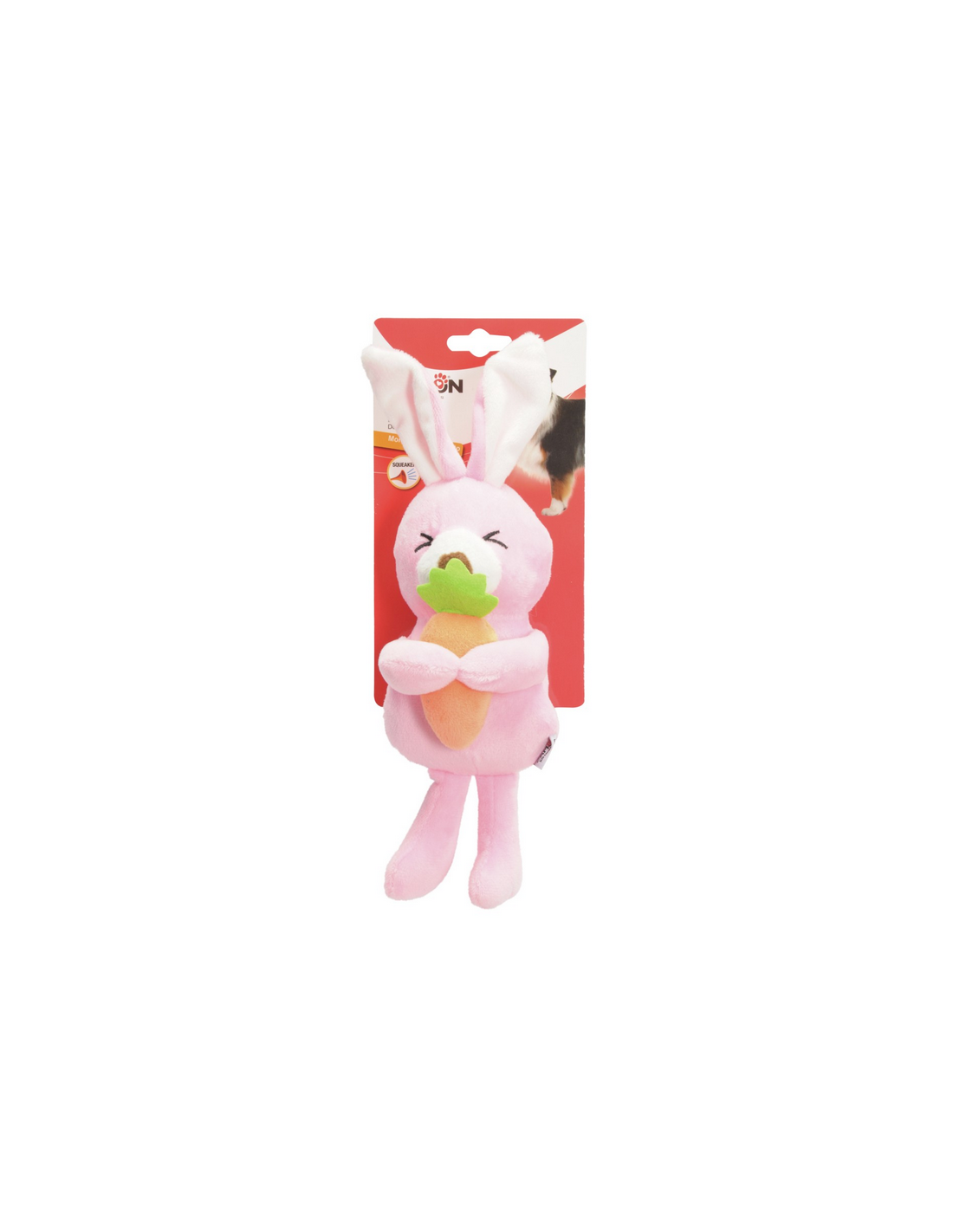 Divertenti giochi in poliestere per cani nella forme rispettivamente di un coniglio e di un orsetto.