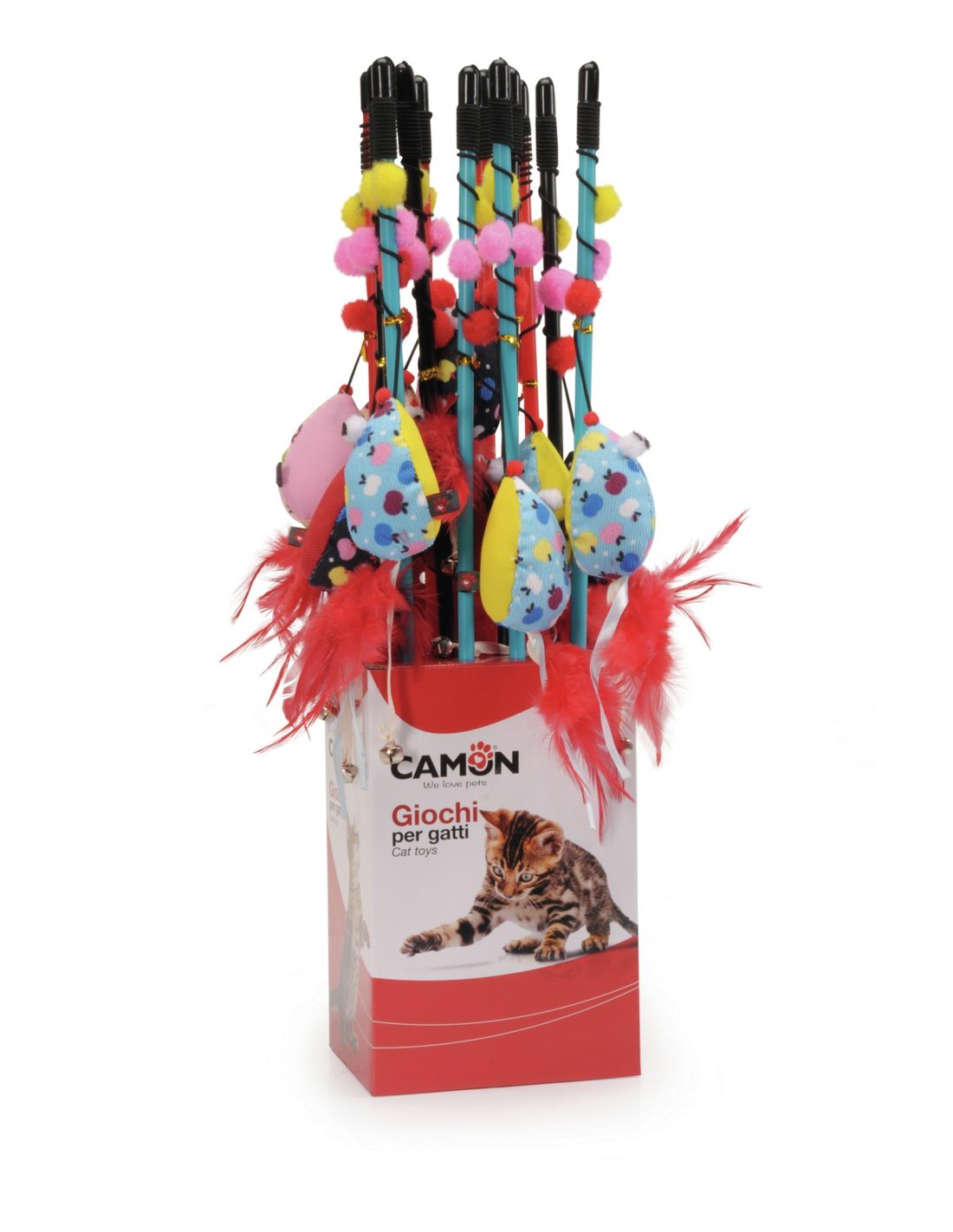 Gioco per gatti - cannetta con mix soggetti colorati e campanellino