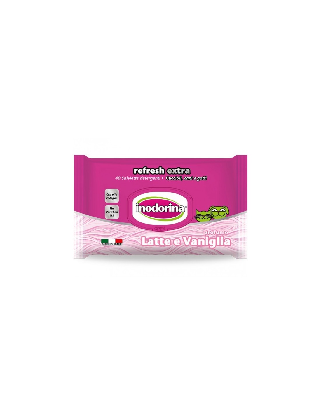Le salviette Inodorina Refresh sono utilissime nei momenti di vita quotidiana con il nostro animale: prima di un viaggio in auto e al termine di una passeggiata o di una gita all’aperto. Inodorina Refresh è particolarmente indicata al momento del rientro in casa nei giorni di pioggia perché neutralizza le molecole di cattivo odore sul manto bagnato, lasciando il pelo deterso e profumato.