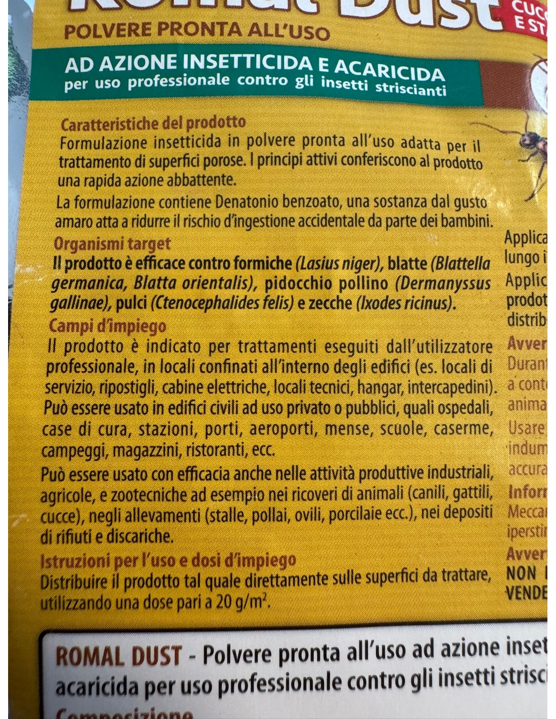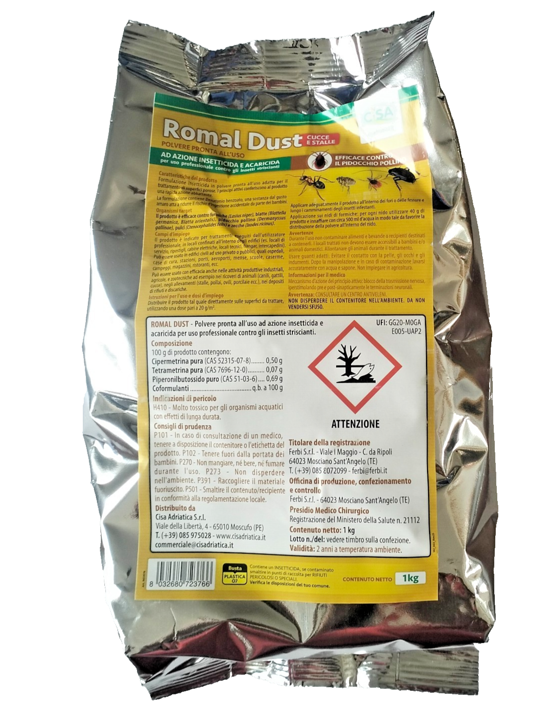 ROMAL DUST 1KG INSETTICIDA IN POLVERE SECCA PER USO DOMESTICO E CIVILE CONTRO INSETTI STRISCIANTI (PIDOTOX PLUS) INS3076