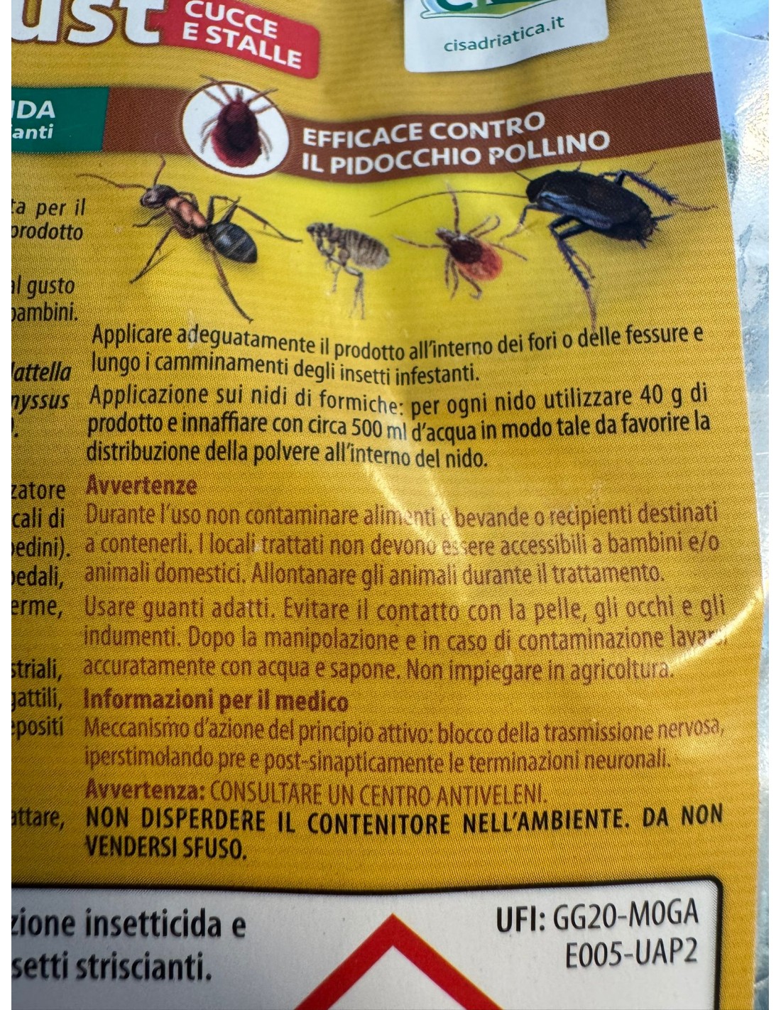 Insetticida in polvere secca micronizzata pronto all’uso per uso domestico e civile contro gli insetti striscianti come scarafaggi, formiche ecc. Indicato per la disinfestazione di locali riparati è efficace nelle abitazioni, ospedali, caserme, alberghi e magazzini ed assicura un’azione residuale prolungata.