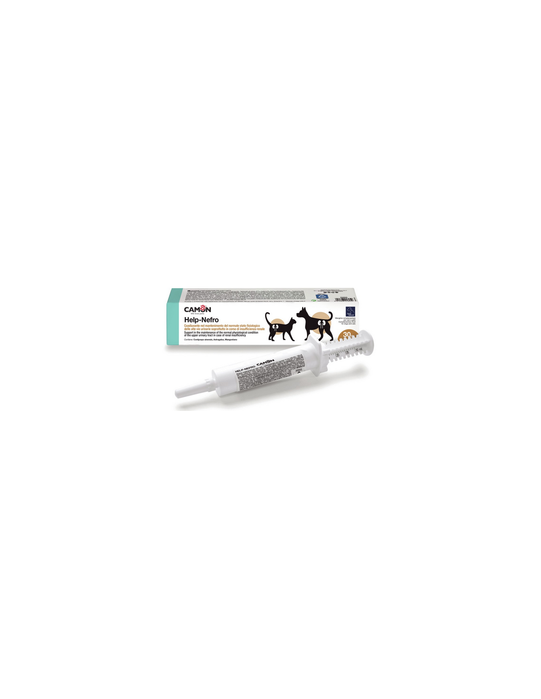 Help-Nefro è un mangime complementare per cani e gatti, a base di estratti vegetali, funghi e vitamine, sviluppato per mantenere la fisiologica funzionalità renale dell'animale.