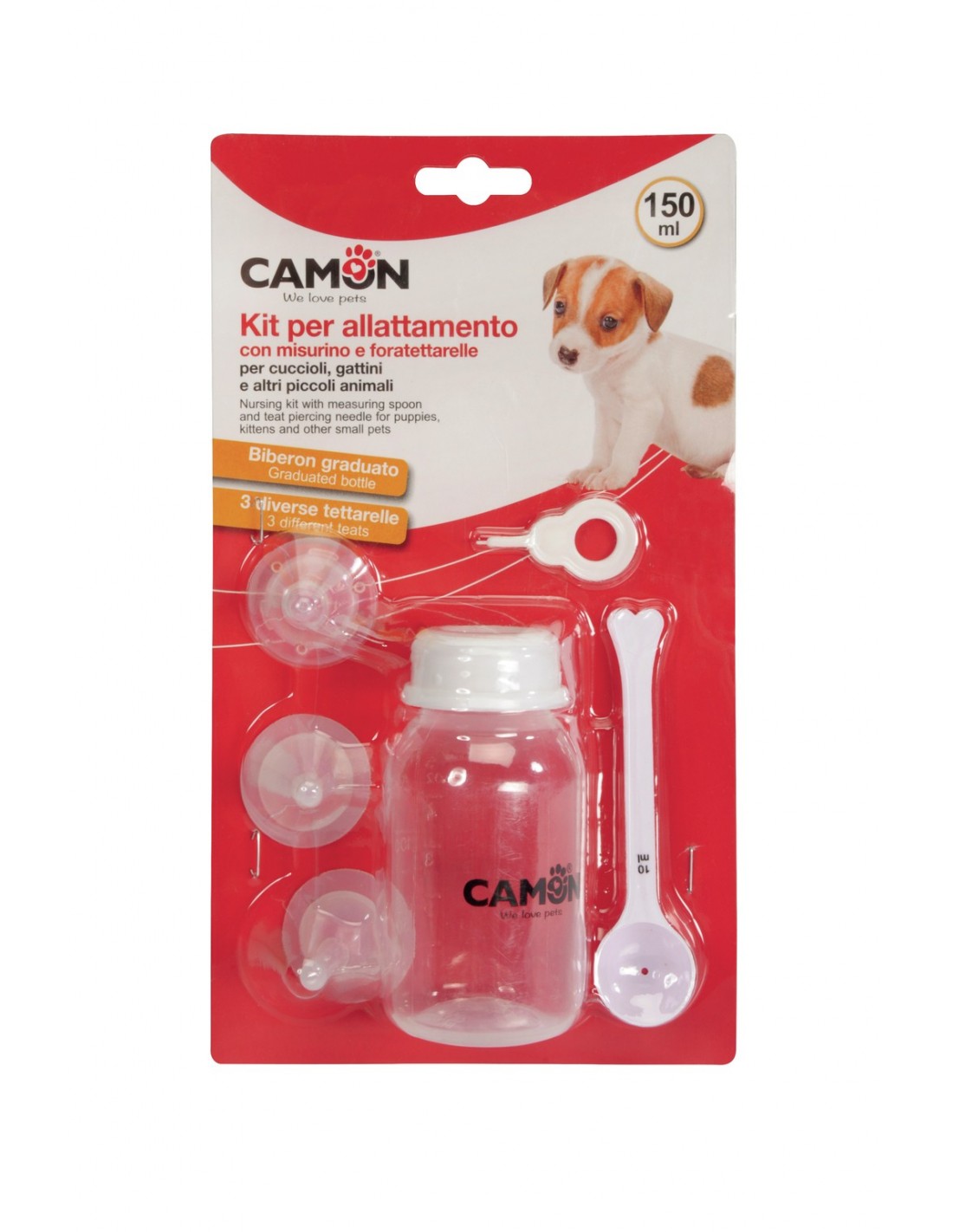 Questo kit biberon Camon, completamente atossico, è stato appositamente realizzato per allevatori professionisti e veterinari, per il sicuro allattamento e lo svezzamento di cuccioli, gattini, criceti, porcellini d’India e altri piccoli animali.