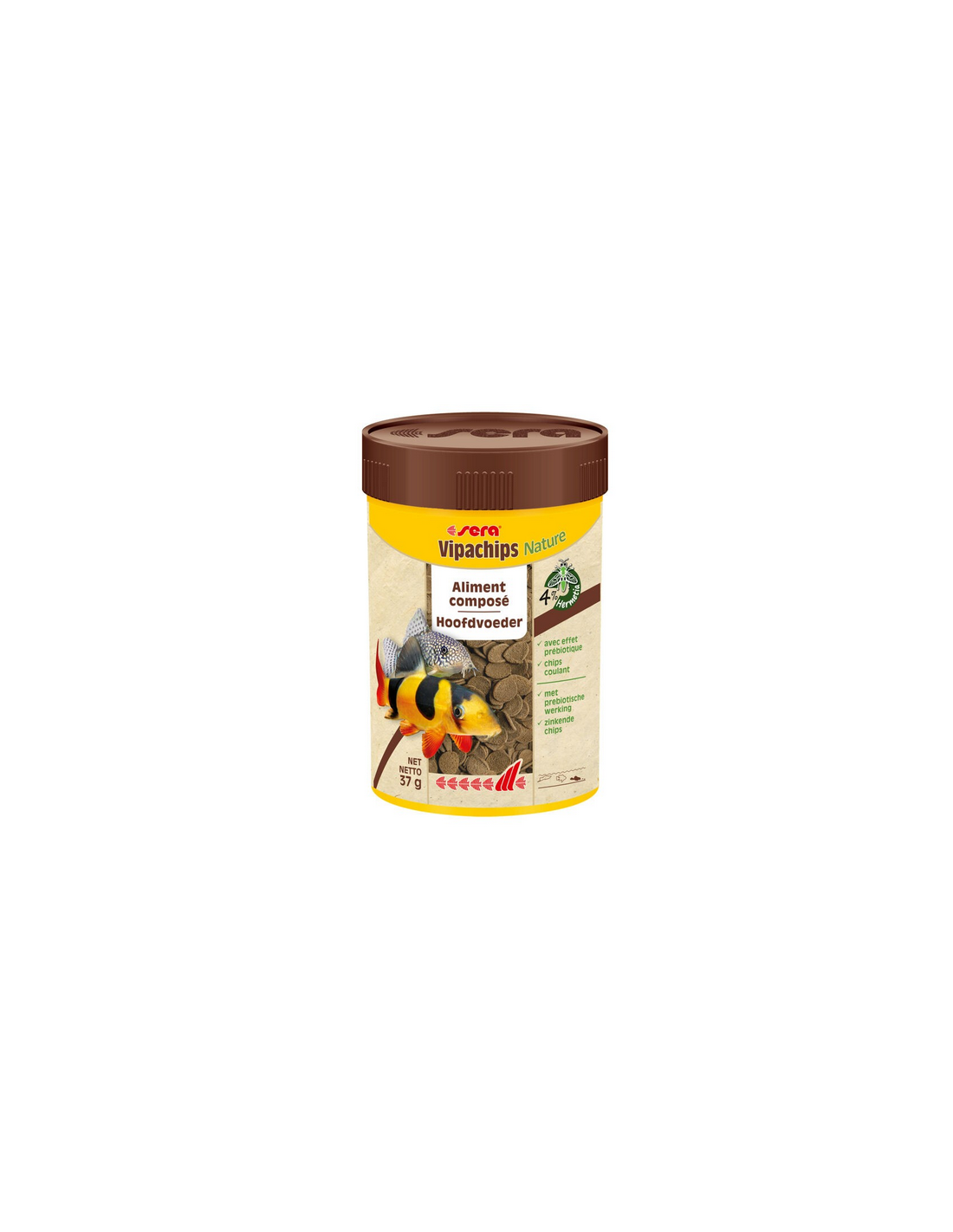 Sera Vipachips Nature è il mangime completo in chips che affondano velocemente, senza coloranti e conservanti, per tutti i pesci che mangiano sul fondo.
