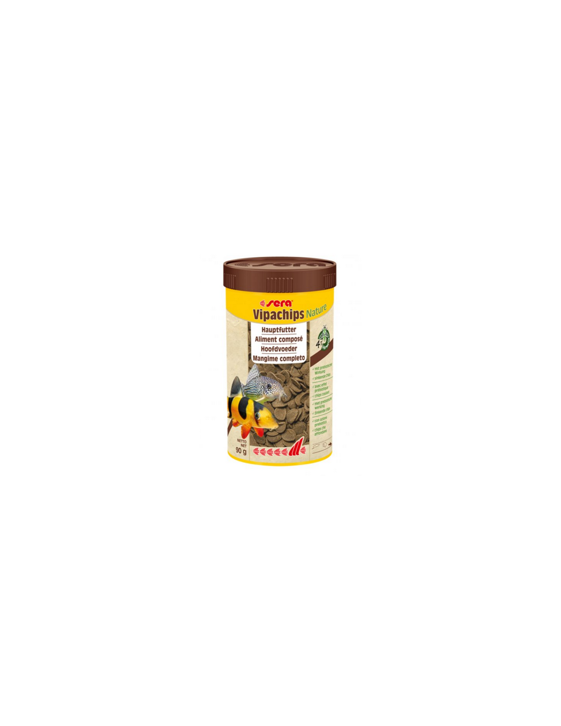 Sera Vipachips Nature è il mangime completo in chips che affondano velocemente, senza coloranti e conservanti, per tutti i pesci che mangiano sul fondo.