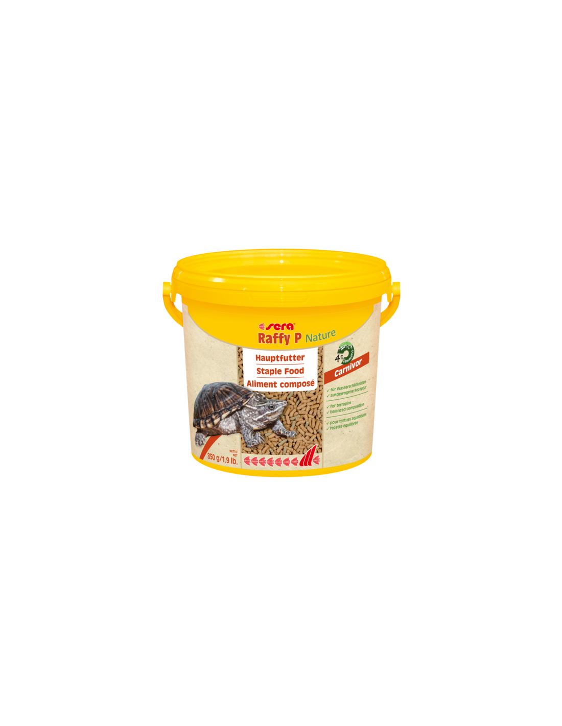 sera Raffy P Nature è il mangime completo in granuli galleggianti prodotto in modo delicato per rettili carnivori come le tartarughe acquatiche.