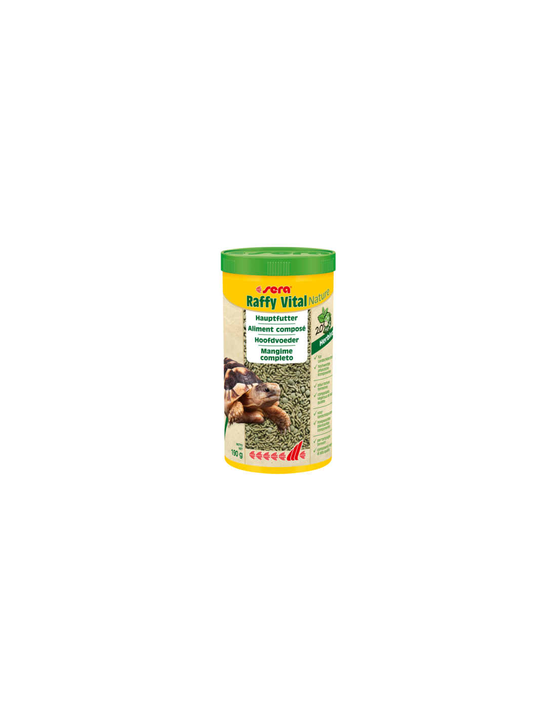 sera Raffy Vital Nature è il mangime completo, senza coloranti e conservanti, composto da stick e pastiglie a base di erbe e vegetali, prodotto in modo delicato, per tartarughe terrestri e tutti gli altri rettili erbivori.