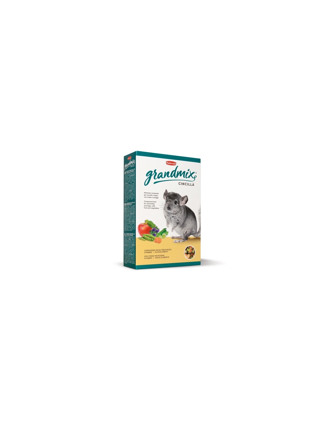 Alimento per cincillà e degù, con frutta e ortaggi, con aggiunta di vitamine e oligoelementi.