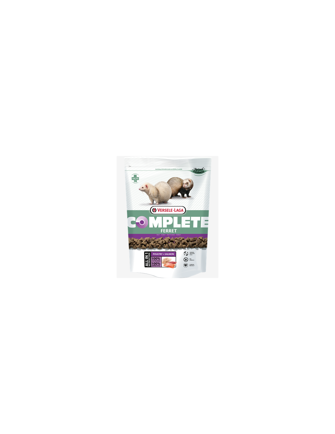 Versele Laga Complete Ferret è una fonte di nutrimento sicura. I pellet estremamente saporiti "tutto in uno" evitano l'alimentazione selettiva. In questo modo il vostro furetto ha a disposizione tutti i nutrienti essenziali e sarà sempre in perfetta salute. Questo mangime senza cereali e senza glutine è composto al 90% di proteine di origine animale per una buona salute e una digestione ottima. L'aggiunta di taurina aiuta a mantenere in salute i muscoli cardiaci. Versele-Laga Complete Ferret è sviluppato con l'aiuto di veterinari, sulla base di conoscenze scientifiche avanzate.