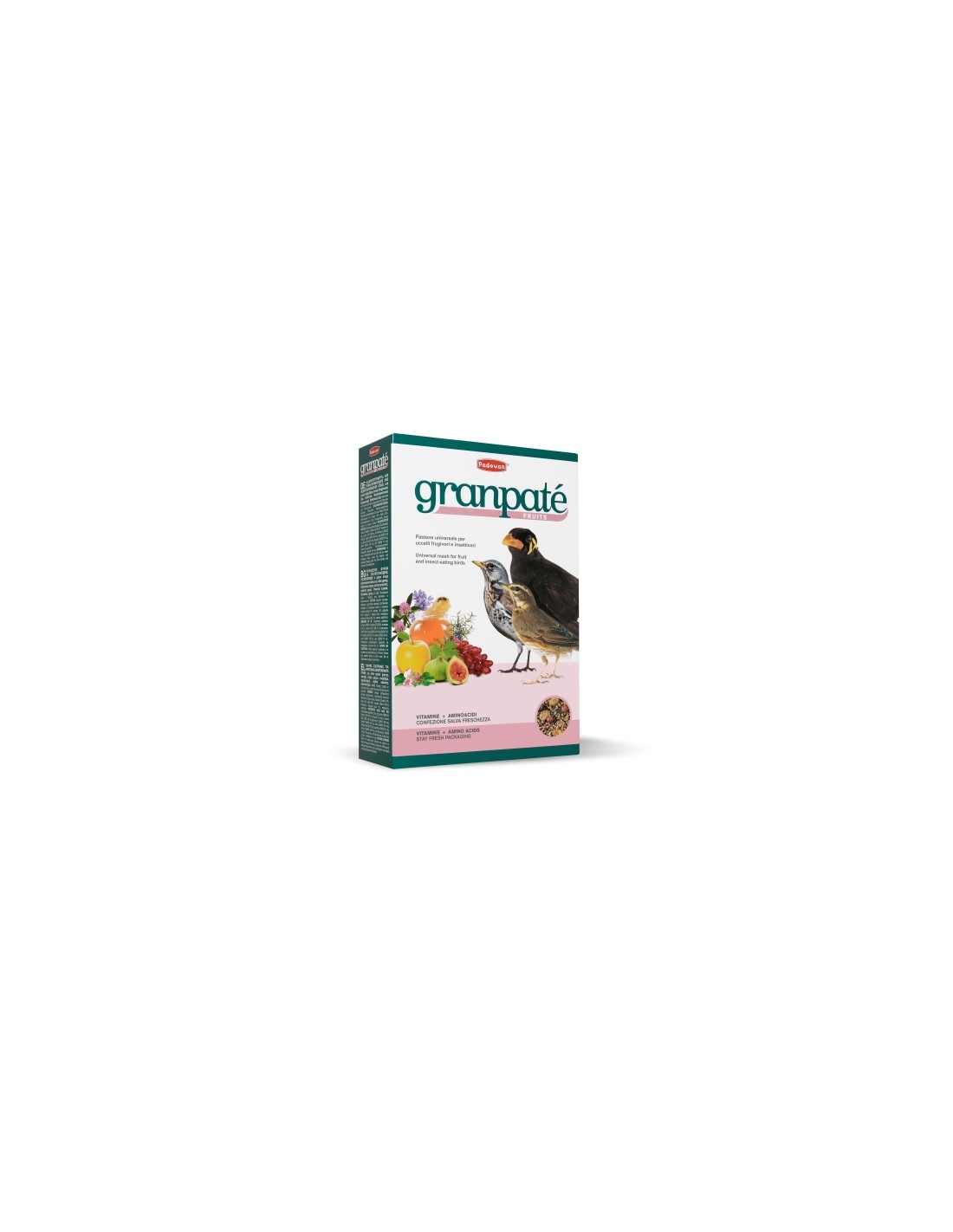 Alimento completo, arricchito con vitamine e aminoacidi, ricco di frutta per uccelli insettuvori e frugivori, indispensabile per ravvivare il piumaggio e stimolare le doti canore degli uccelli da richiamo.