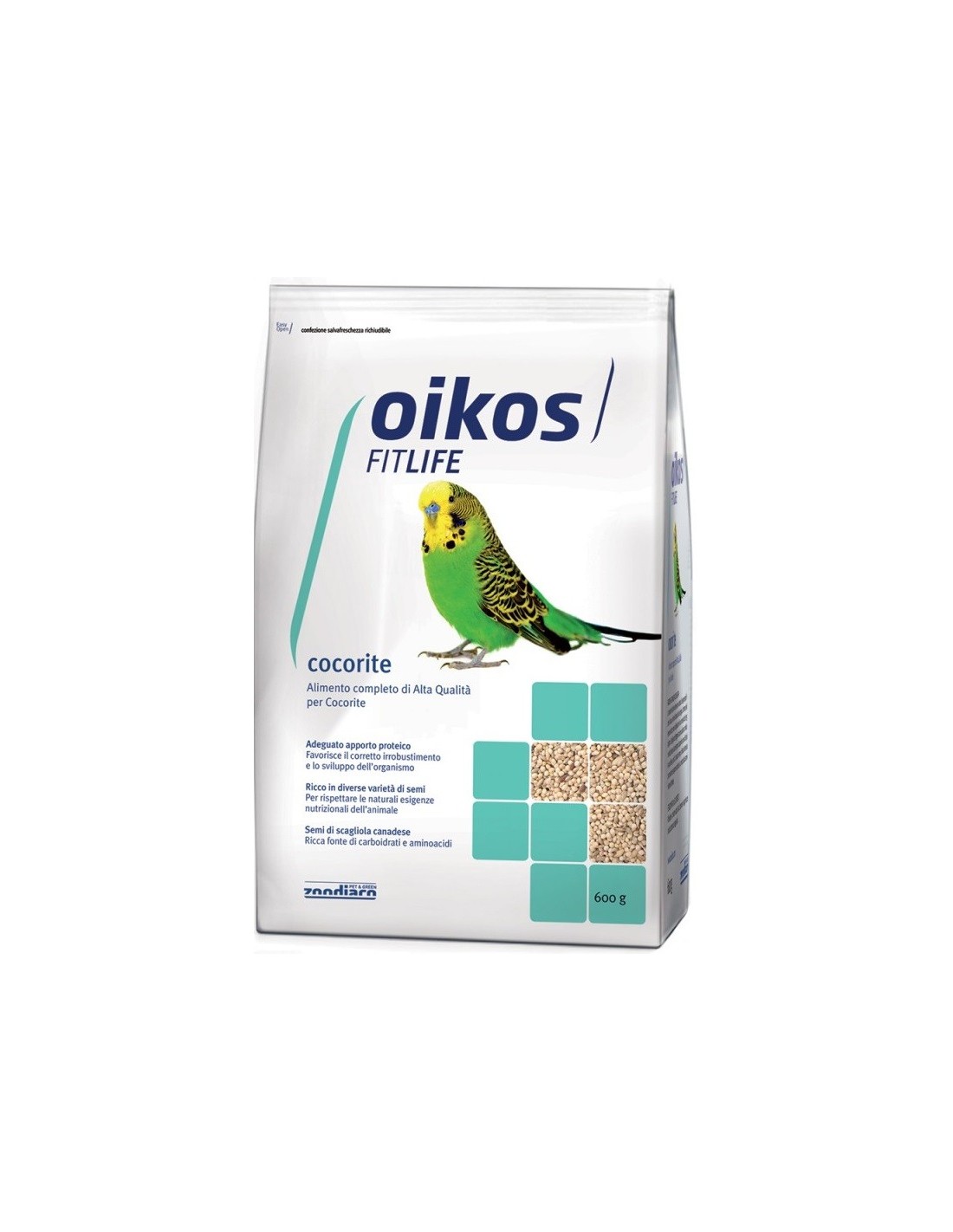 Oikos Fitlife Cocorite è un alimento completo per l’alimentazione dei pappagallini ondulati, ricco in diverse varietà di semi per rispettare le naturali esigenze nutrizionali dell’animale. L’adeguato apporto proteico favorisce il corretto sviluppo e irrobustimento dell’organismo mentre i semi di scagliola sono una ricca fonte di carboidrati e aminoacidi. L’apporto bilanciato dei vari nutrienti favorisce il mantenimento di una condizione di benessere.