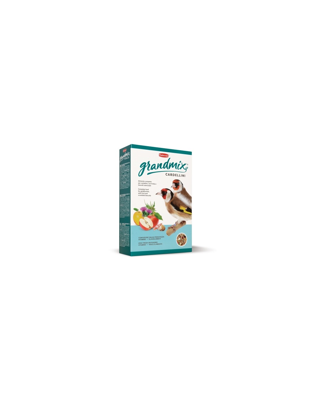 Miscela di semi, con frutta disidratata, biscotti sbriciolati e conchiglie macinate, e con l’aggiunta di vitamine.