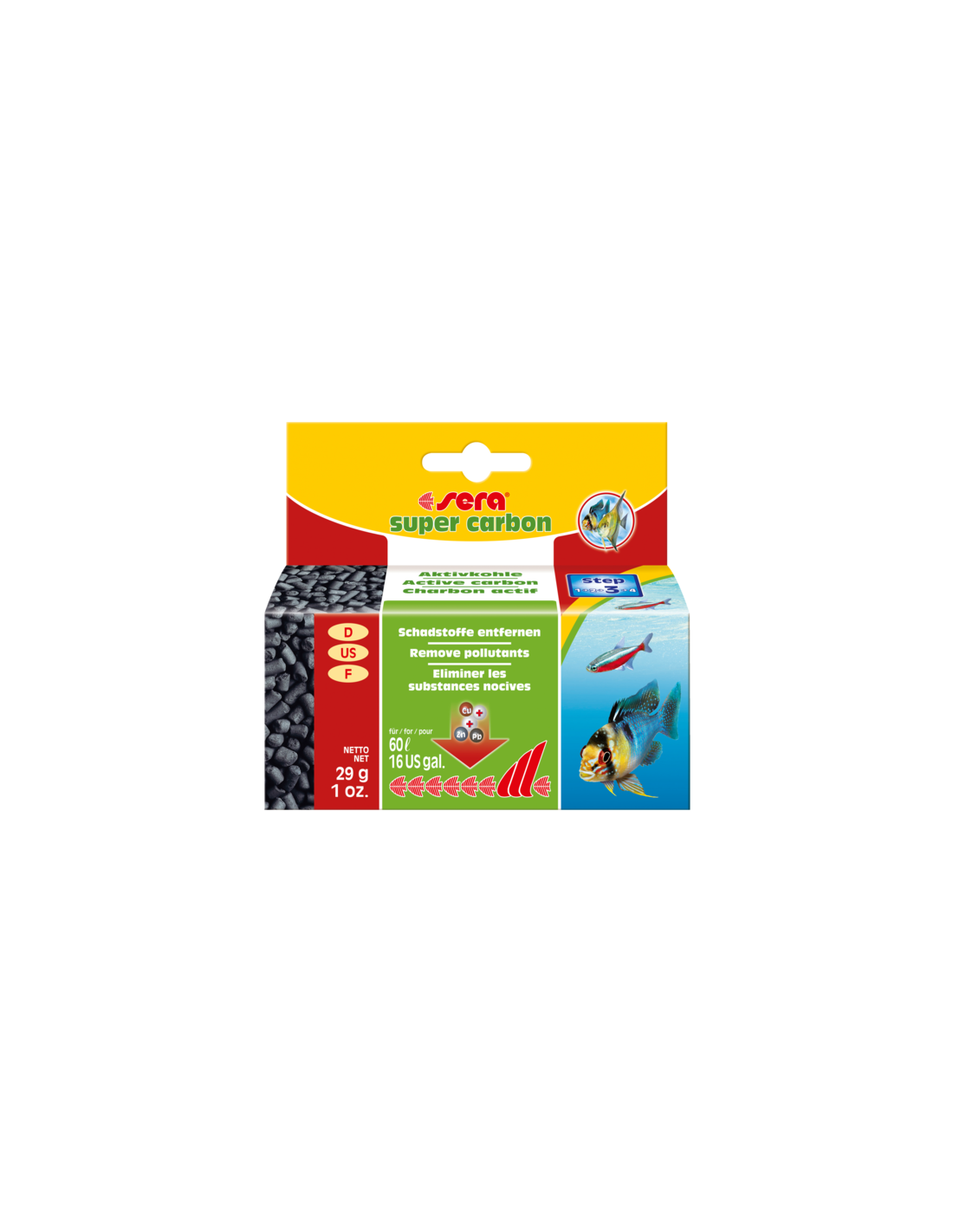 sera super carbon inoltre è eccellente per l’utilizzo in caso di grave avvelenamento (p.es. in caso di sospetta introduzione di sostanze nocive durante lavori di manutenzione, ornamenti non appropriati, sovradosaggi, ecc.) e anche per l’eliminazione di fastidiose colorazioni dell’acqua.