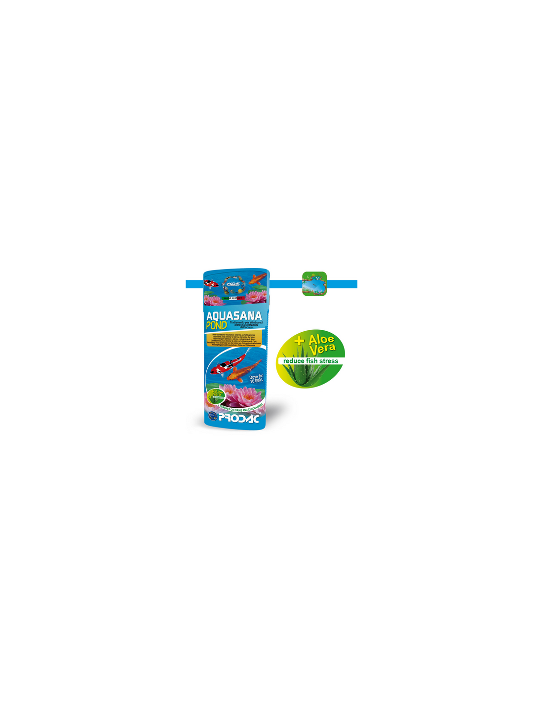 Biocondizionatore per acqua di laghetto indispensabile per eliminare il cloro e la cloramina dell’acqua di rubinetto, annullare gli effetti dei metalli pesanti e prepararla a ricevere i pesci. Contiene ALOE VERA uno speciale colloide naturale per la pelle dei pesci che evita danni alle branchie e al delicato muco che la ricopre. Agisce efficacemente come anti-stress nei cambi d’acqua e contribuisce a mantenere il pH stabile.