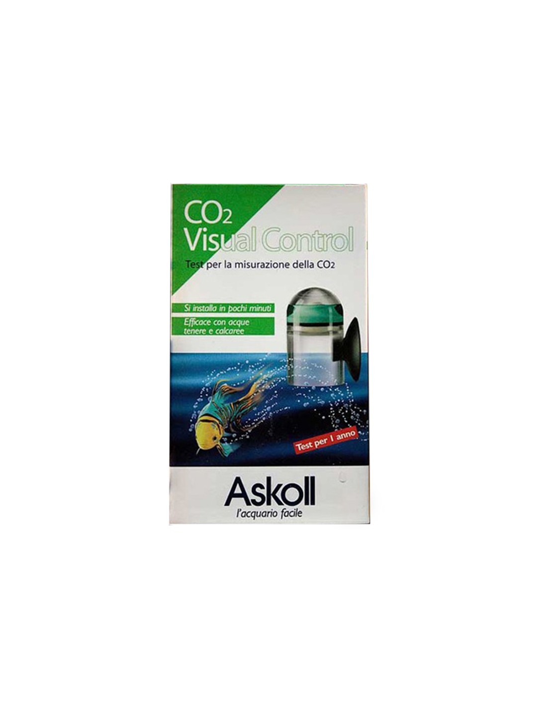 Askoll CO2 Visual Control: CO2 sotto controllo con una sola occhiata. CO2 Visual Control un tester semplice ma infallibile: sfrutta la reazione tra un reagente (completamente innocuo per l'acquario) e l'acqua contenuta nell'ampolla superiore, colorandola a seconda della quantita di CO2. Una volta installato in acquario, basta un'occhiata per scoprire se la situazione è ideale o se bisogna intervenire. Sostituire il reagente ogni 10/15 giorni circa.