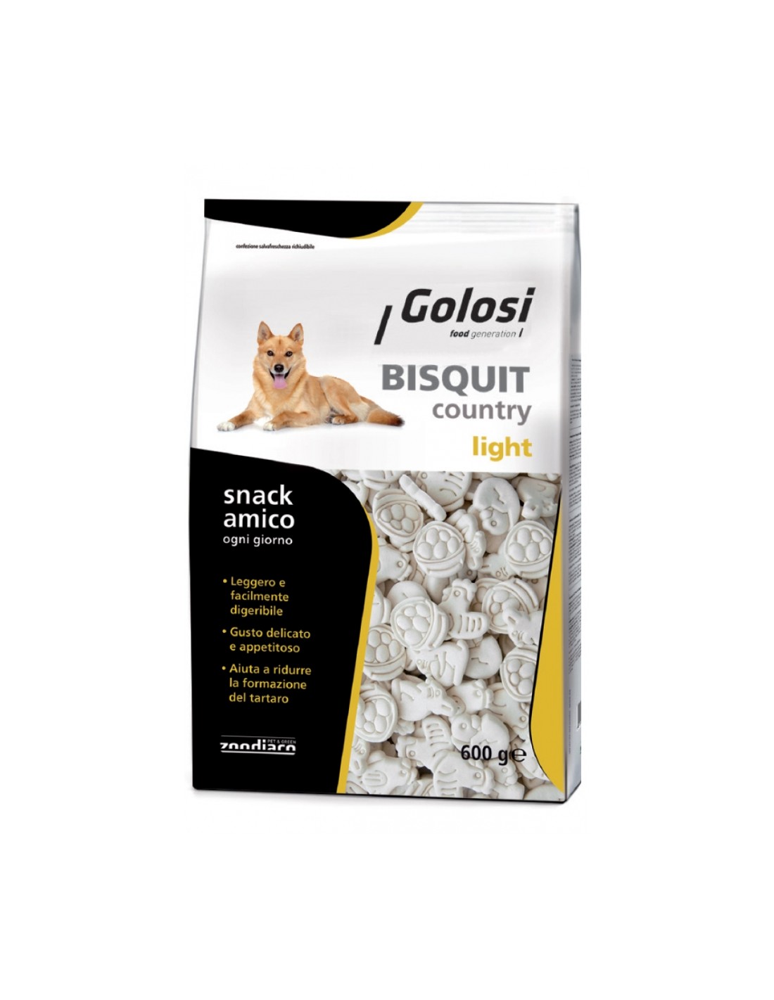 Bisquit COUNTRY Light sono biscotti dai gusti appetitosi, pensati per il benessere e il divertimento del tuo amico a quattro zampe, in ogni momento della giornata. La particolare forma e la consistenza aiutano a ridurre la formazione del tartaro contribuendo a combattere l'alitosi. L'innovativa confezione salvafreschezza richiudibile consente di mantenere il biscotto fresco e croccante così da conservare inalterate le sue proprietà per la gioia e il benessere del tuo cane ogni giorno
