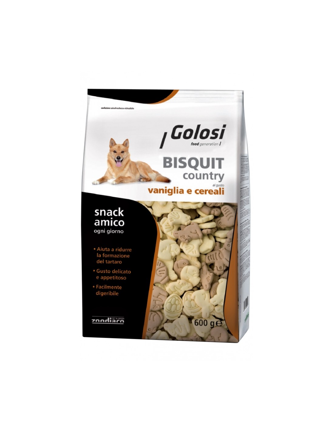 Bisquit COUNTRY al gusto Vaniglia e Cereali sono biscotti dai gusti appetitosi, pensati per il benessere e il divertimento del tuo amico a quattro zampe, in ogni momento della giornata. La particolare forma e la consistenza aiutano a ridurre la formazione del tartaro e a combattere l'alitosi.