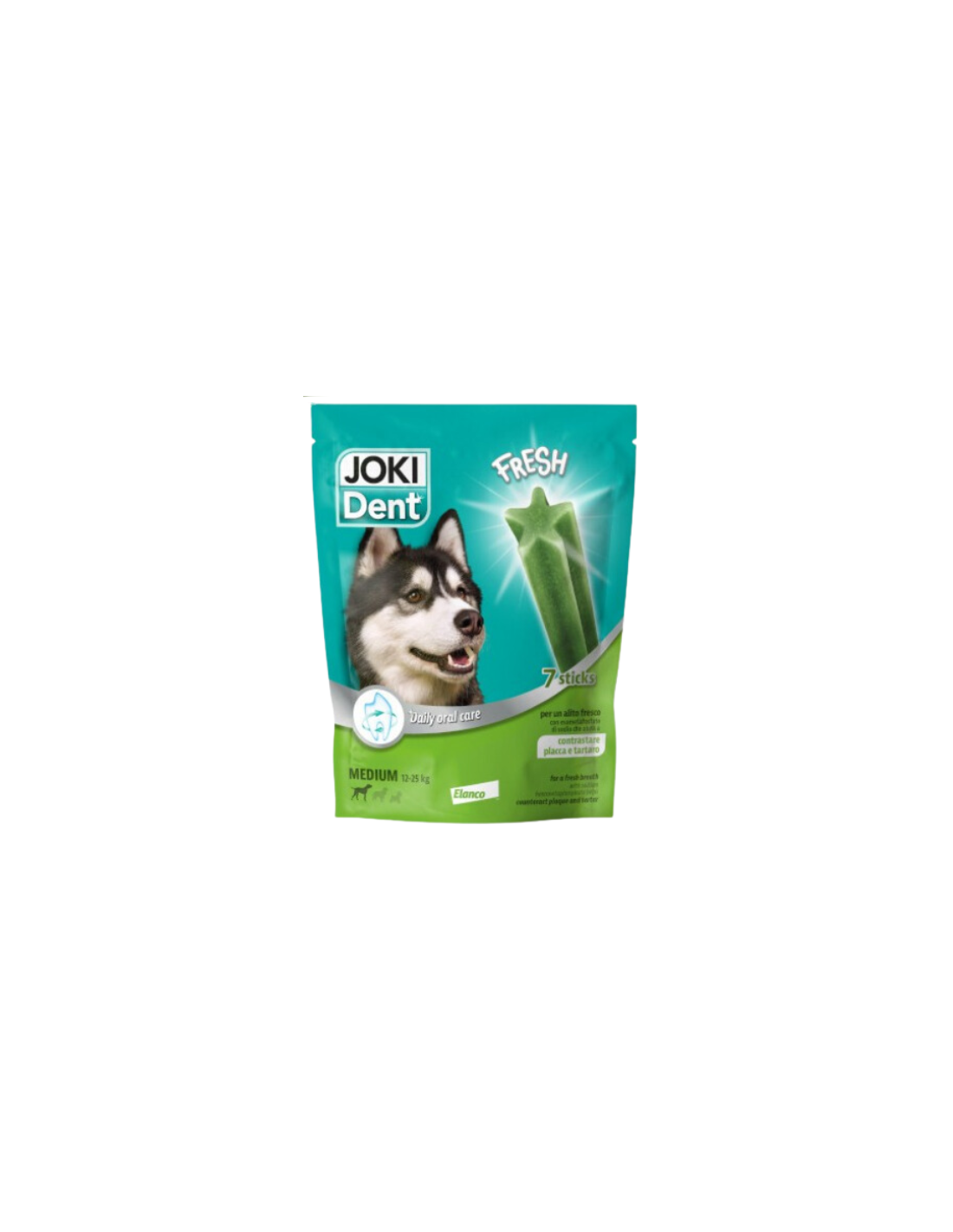 Joki Dent Starbar Fresh è una barretta che garantisce la salute dei denti dei nostri amati pets se utilizzata giornalmente. Inoltre aiuta a ridurre la formazione della placca dentaria e aiuta a mantenere l’alito fresco, tutto ciò grazie agli ottimi ingredienti freschi, come ad esempio l’ eucalipto.