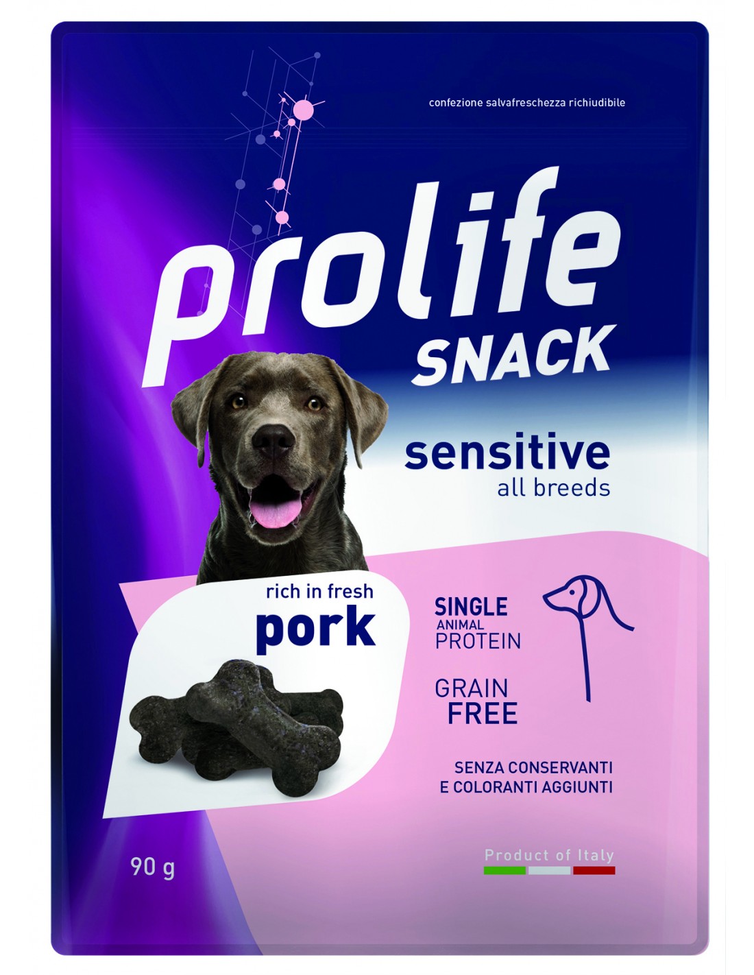 Prolife Snack Sensitive Grain free sono particolarmente indicati per soggetti sensibili, come complemento di un’alimentazione specifica.