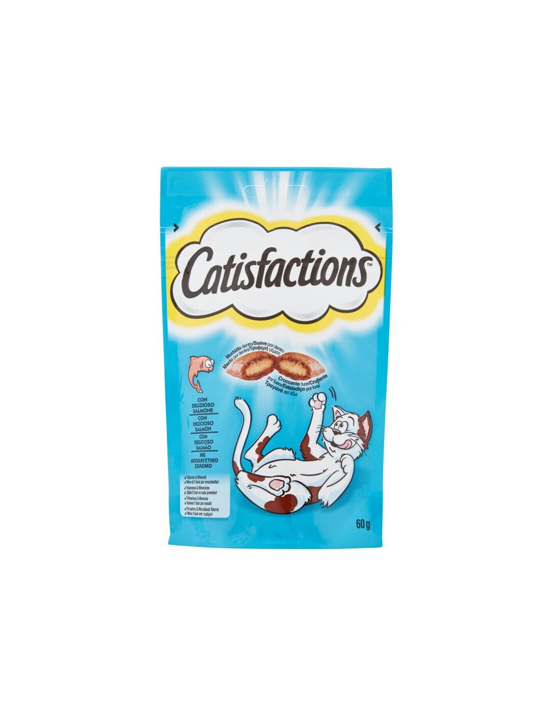 Ingredienti: Cereali, Carni e derivati, Oli e grassi, Sostanze minerali, Pesci e sottoprodotti dei pesci (di cui 4% salmone), Sottoprodotti di origine vegetale