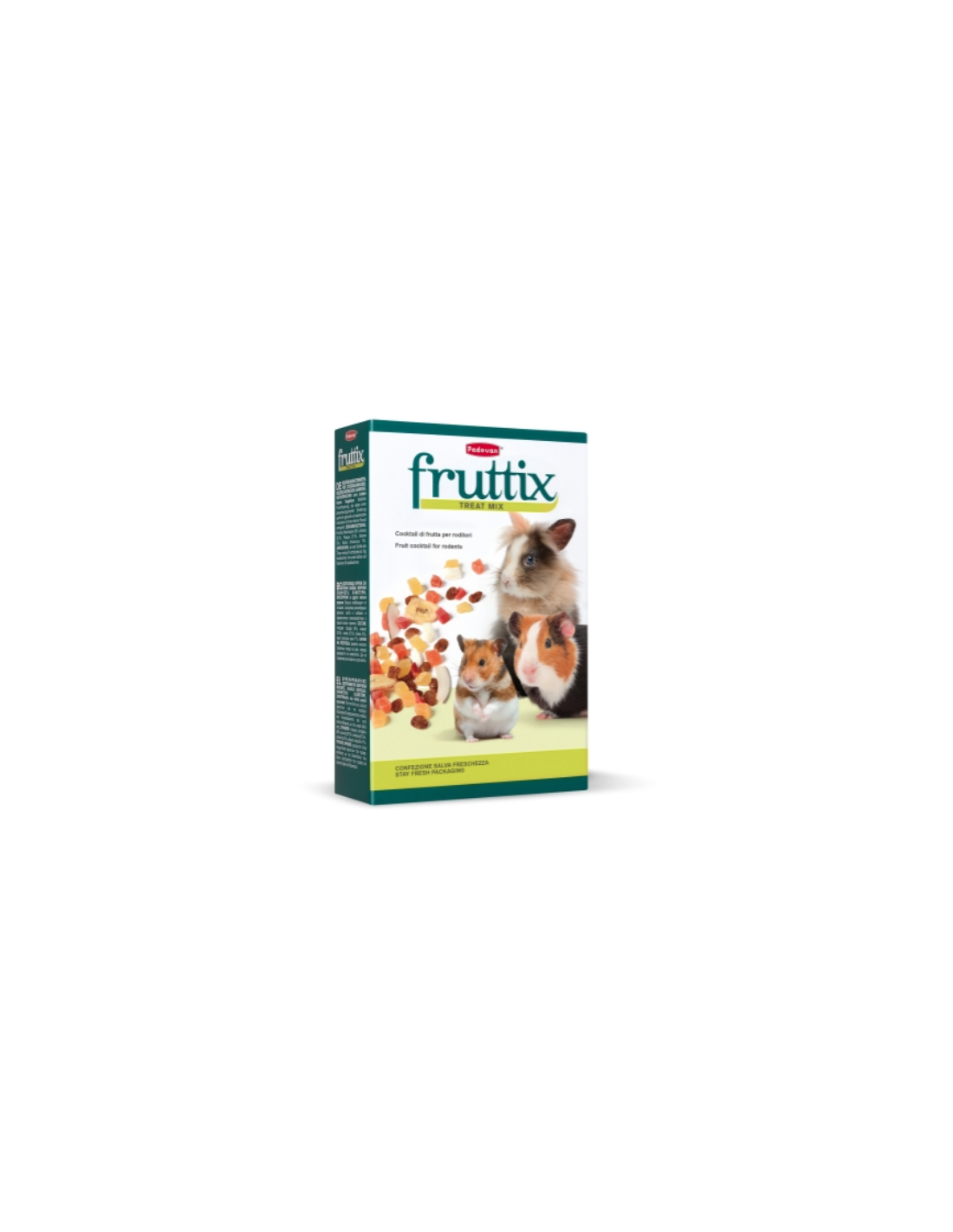 Miscela di frutta, disidratata e zuccherata, ideale per stuzzicare l'appetito dei piccoli roditori, sia in mezzo al normale alimento, sia come premio speciale.